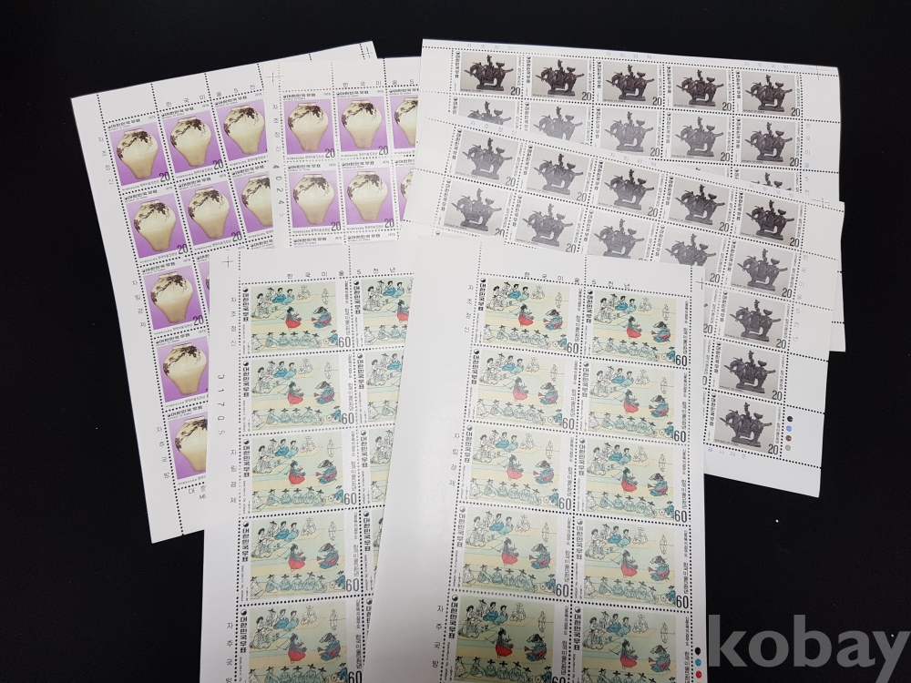 - 미사용 1979년 한국미술5천년 - 제 2,3차 전지 3종 6매 모음