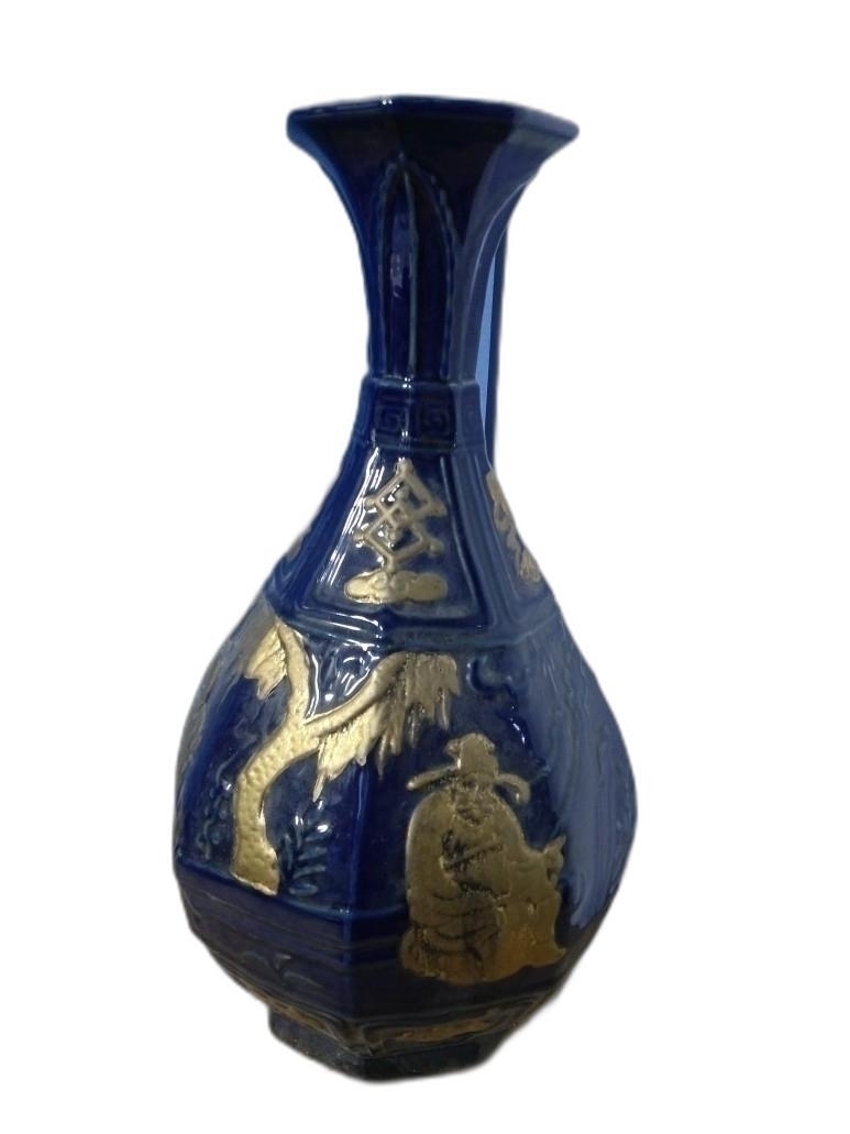4인의 인물이 양각으로 있는 8각 도자기 입니다.