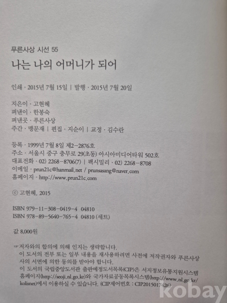 2015년 발간한 제3시집 『나는 나의 어머니가 되어』