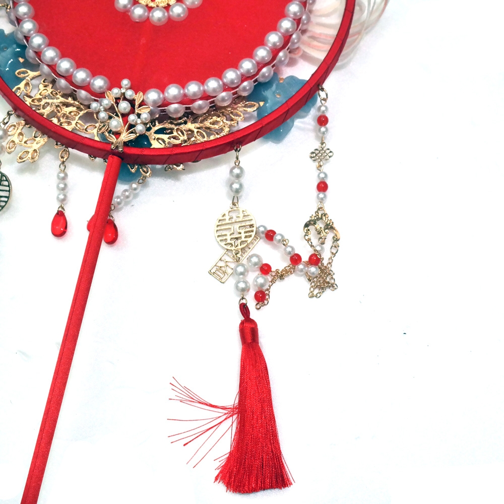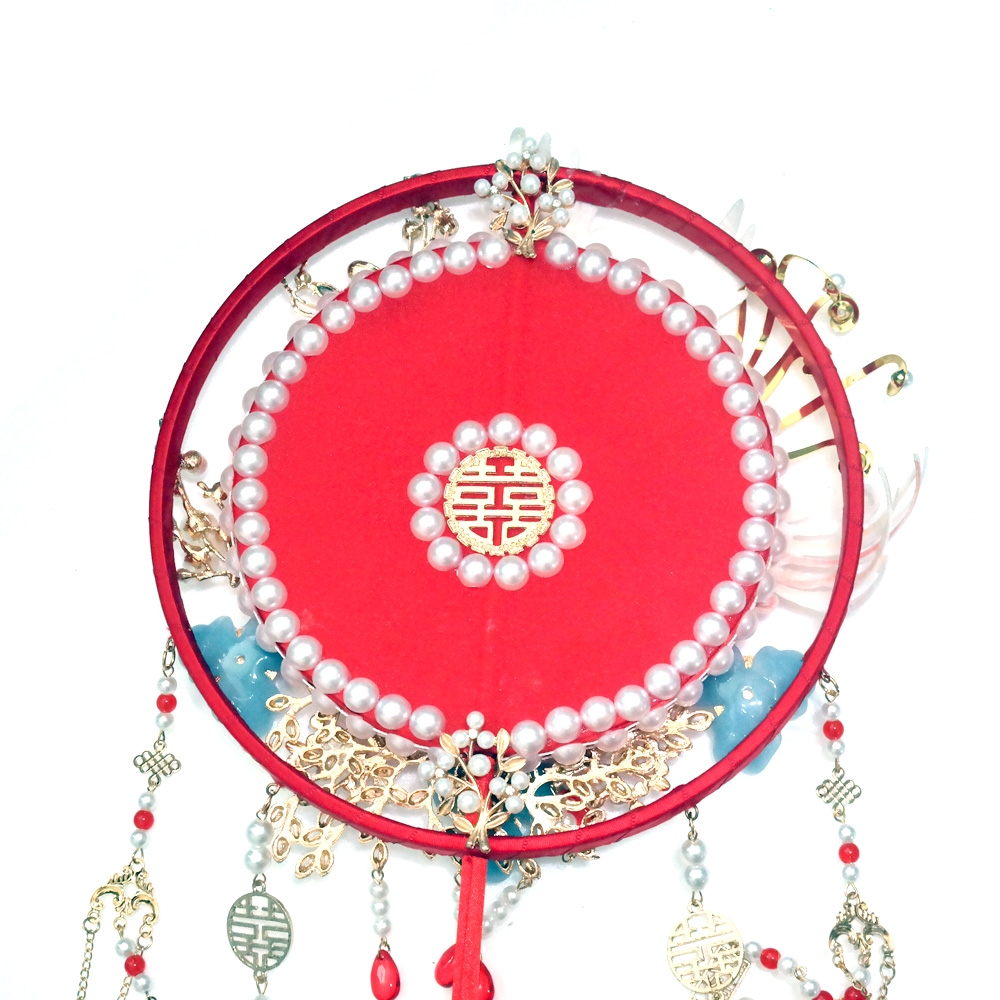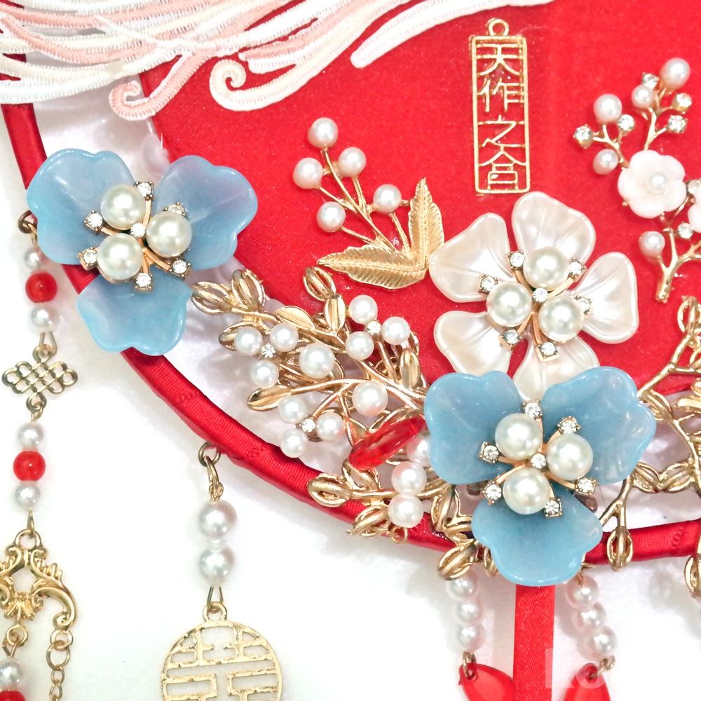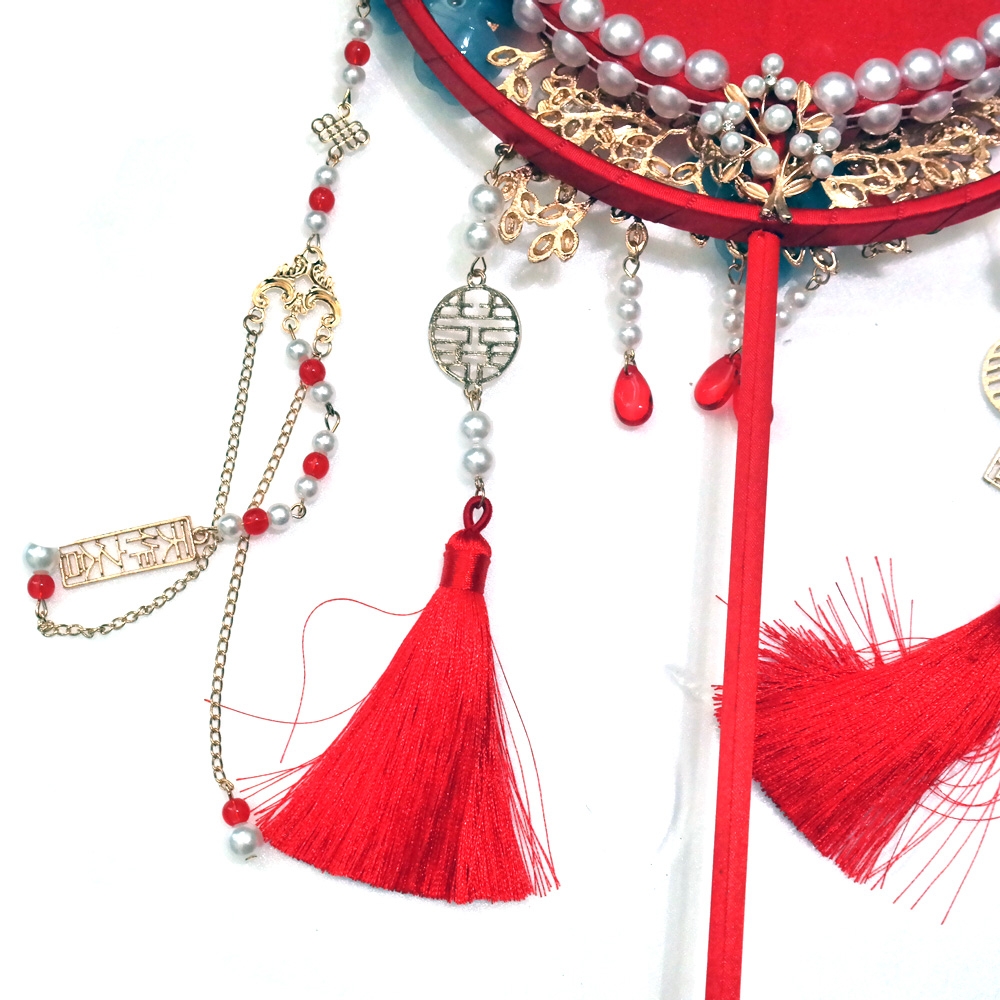 수공예로 여러가지 장식이 아름답게 되어져있는 중국 결혼식 신부부채 소품 입니다.