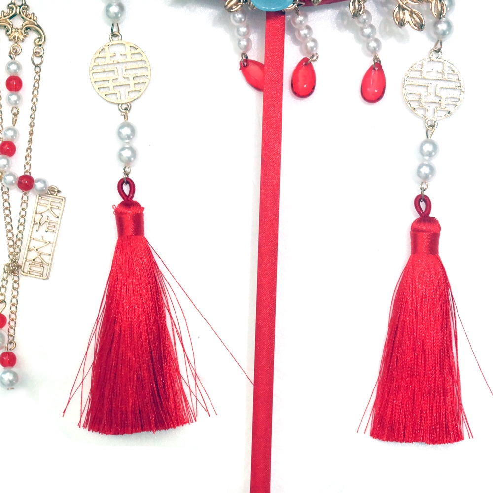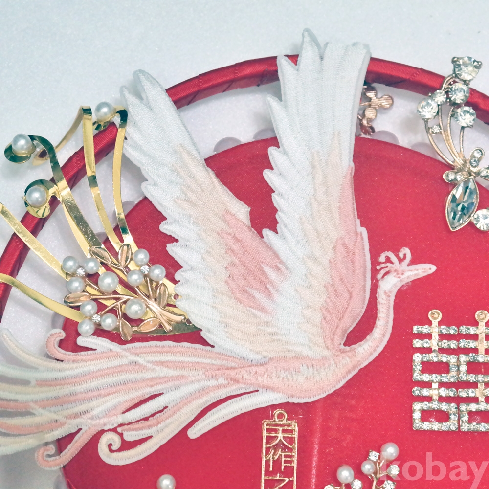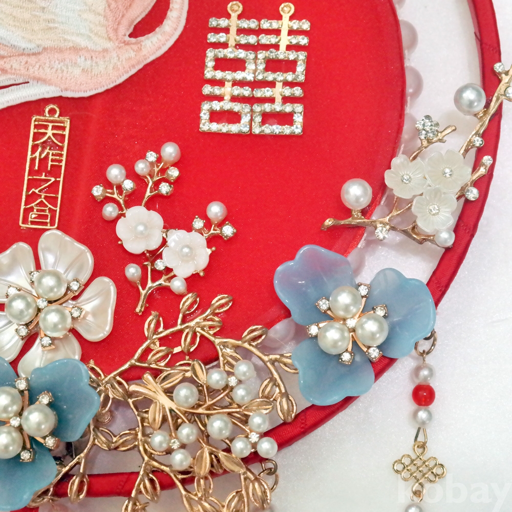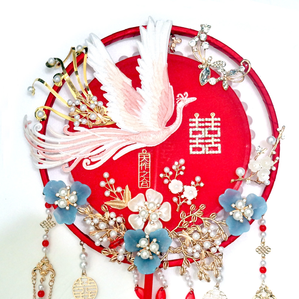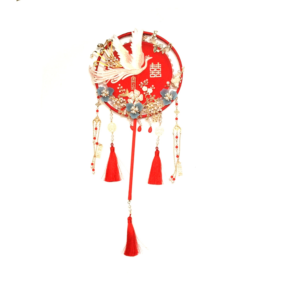 수공예로 여러가지 장식이 아름답게 되어져있는 중국 결혼식 신부부채 소품 입니다.