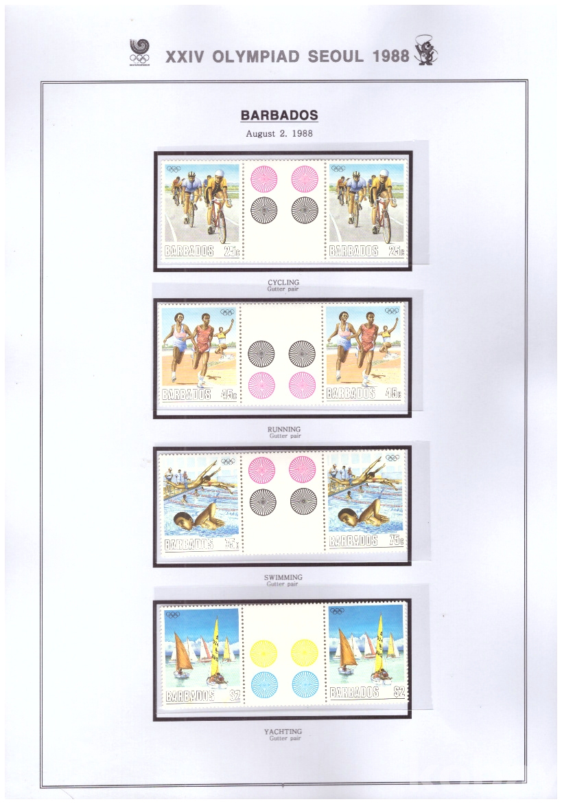 (서울올림픽) Barbados(바베이도스) 1988.8.2 자전거경기외 4완 gutter pair MNH