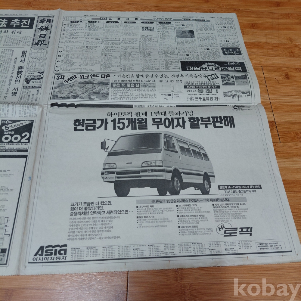 아시아 자동차 미니버스 토픽 광고 조선일보 92년2월18일 올려드립니다