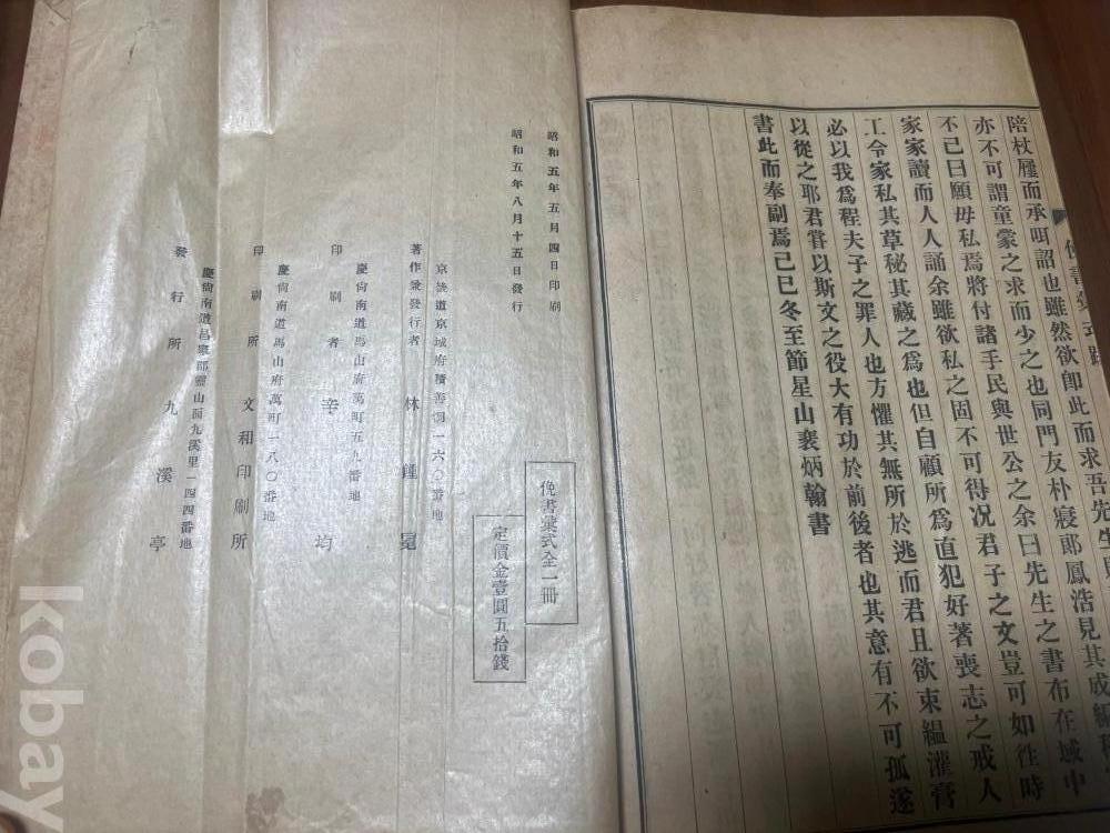 1930년(소화 5년) 일제강점기 시절, 경상남도 진주를 중심으로 발행된 전통 서간문(편지) 작성 지침서로 보임.