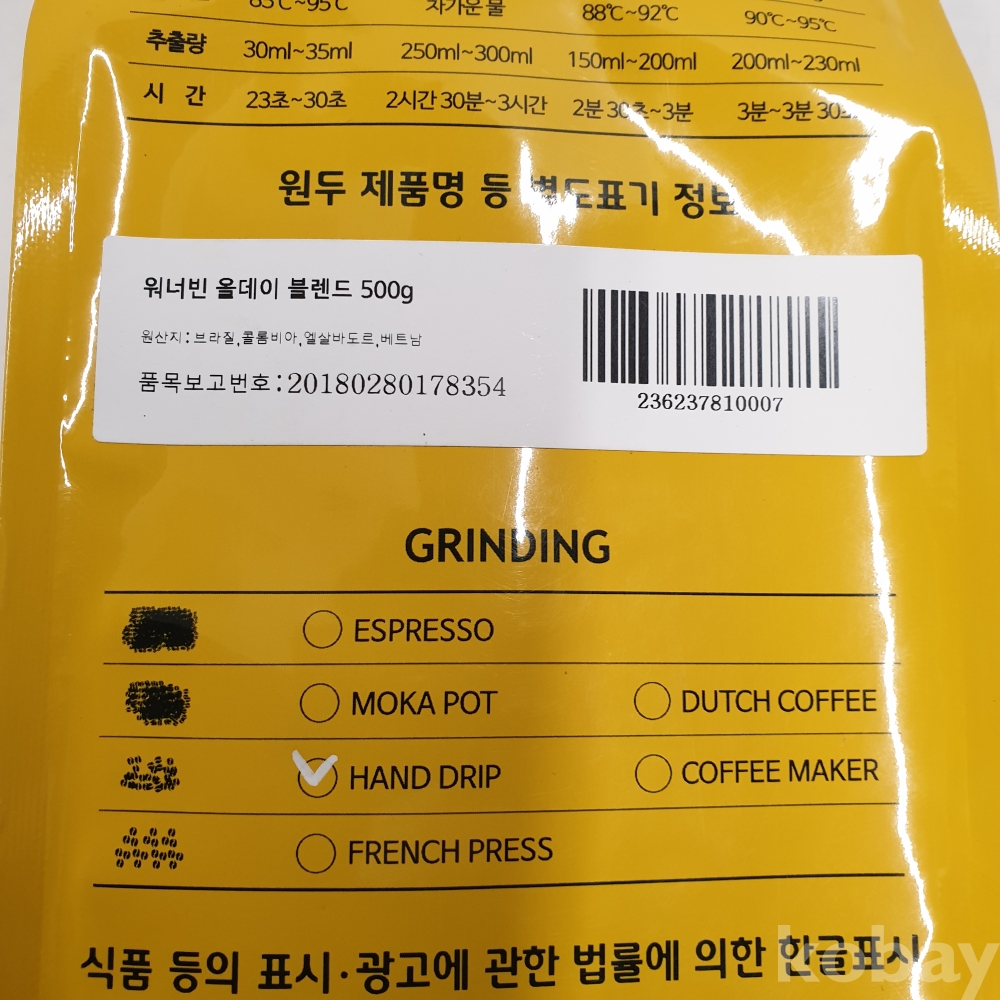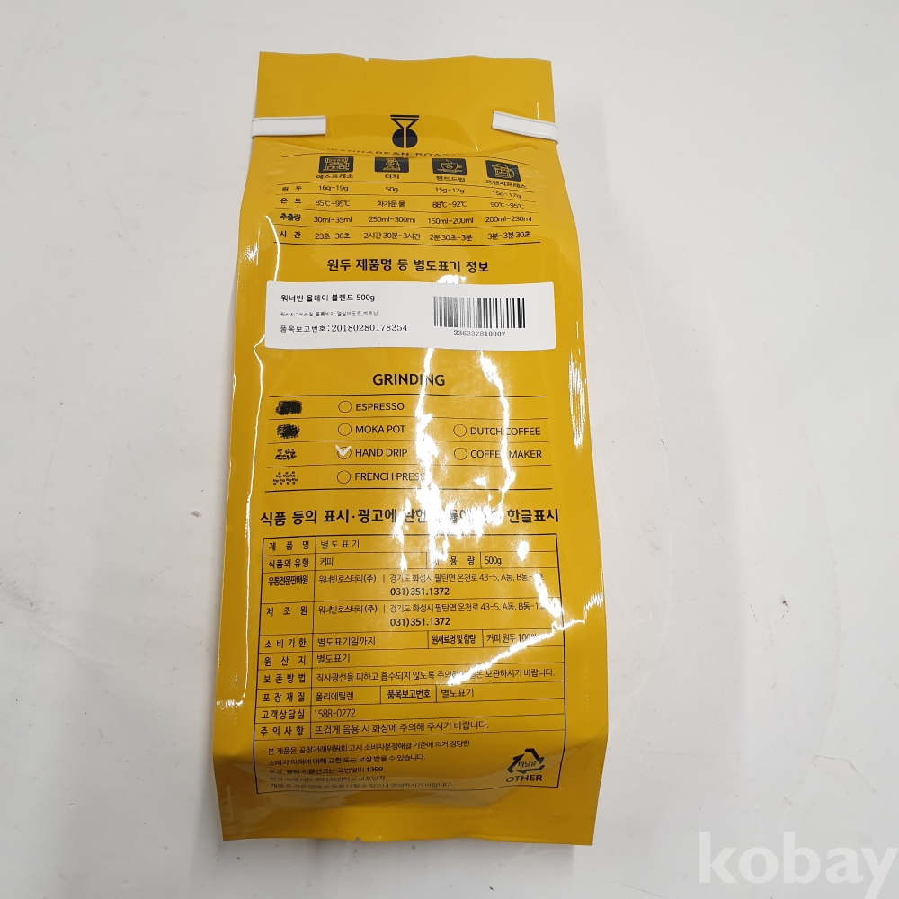 [*천원행복*] J - 3 - 0615 워너빈 원두커피 500G [핸드드립,미개봉]