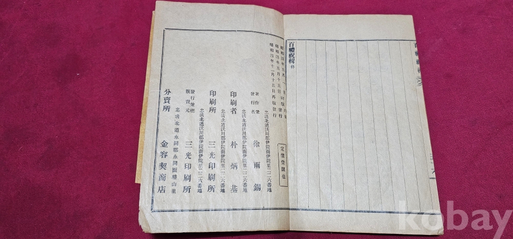 근대 휘귀도서 1929년 삼광 영동 간행본 서우석 著 백례축집 1책 완질