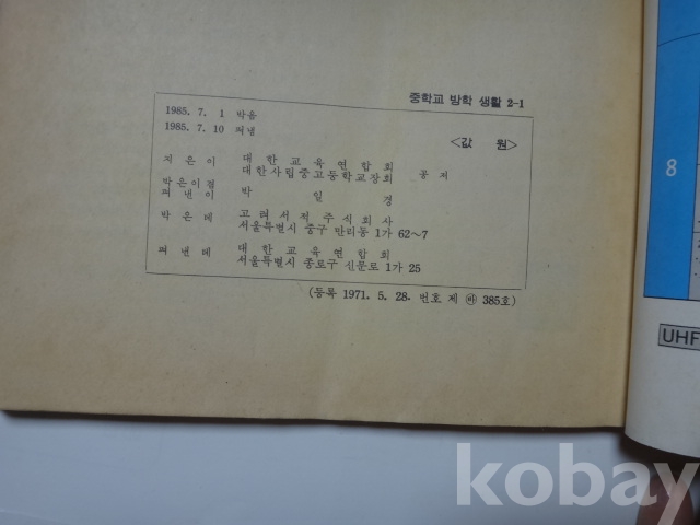 (중학교, 여름) 방학생활 2 - 우리의 경험세계와 우주, 제2차 세계대전과 38선 등 (1985년)