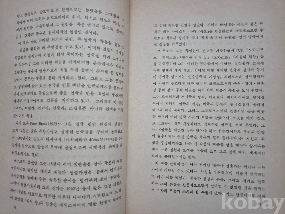 1989년 발간한 (김선 옮김) 연극이론서 『빈 공간』