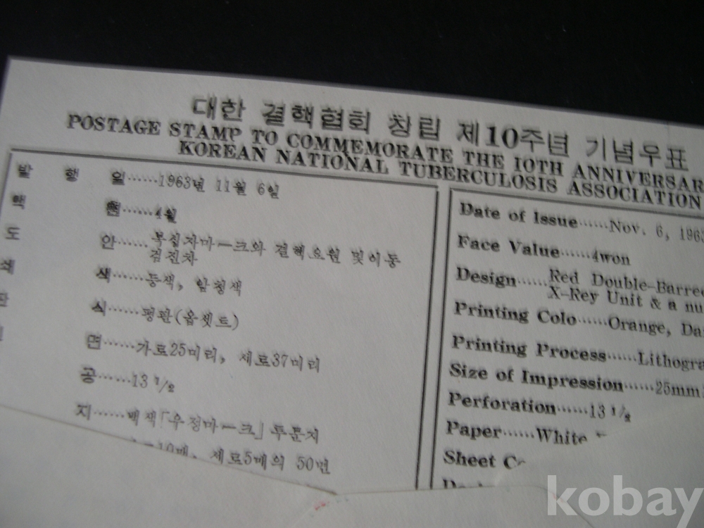 초일봉투 #3943 : 대한결핵협회 장립 10주년 기념 (1963. 11. 6 서울중앙)