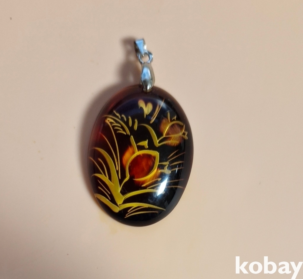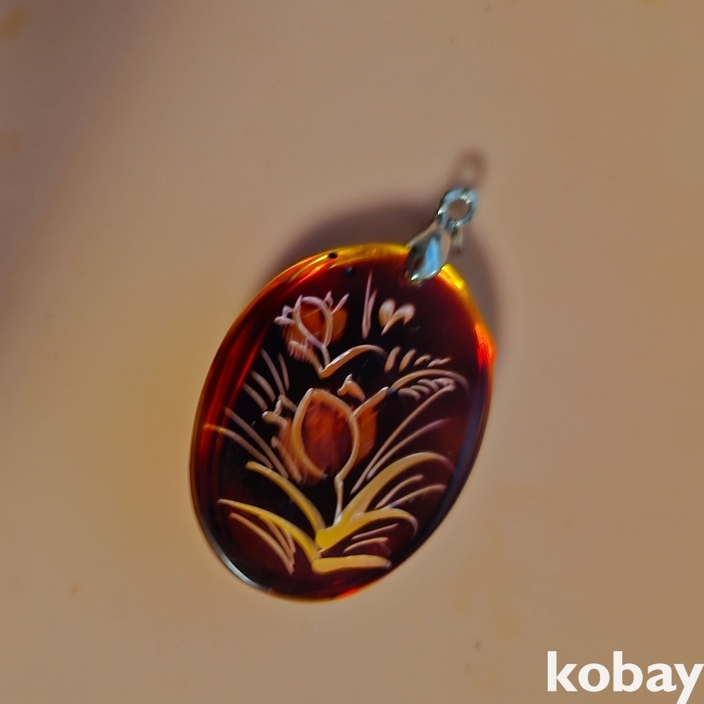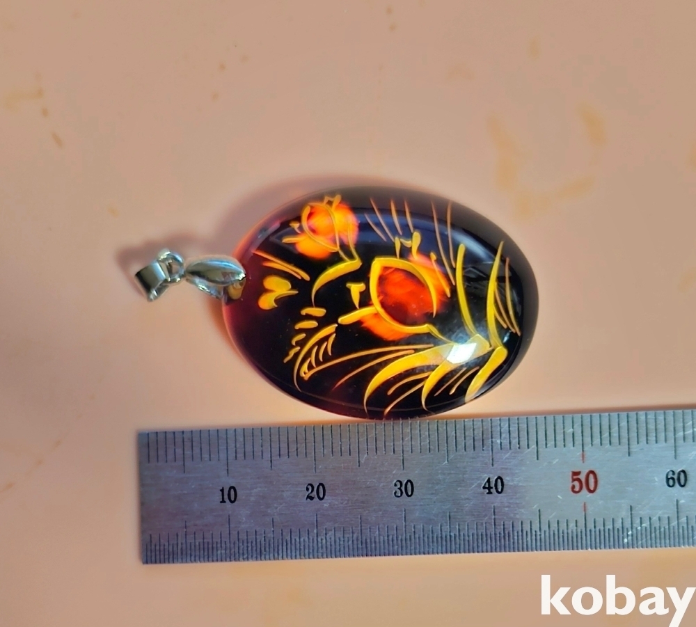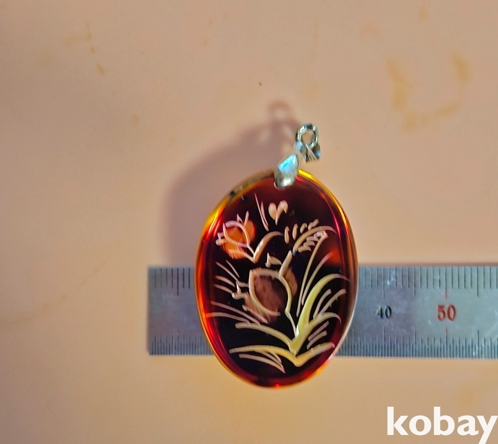 안쪽으로 조각을 해서 멋을 낸 합성호박 펜던트입니다.
