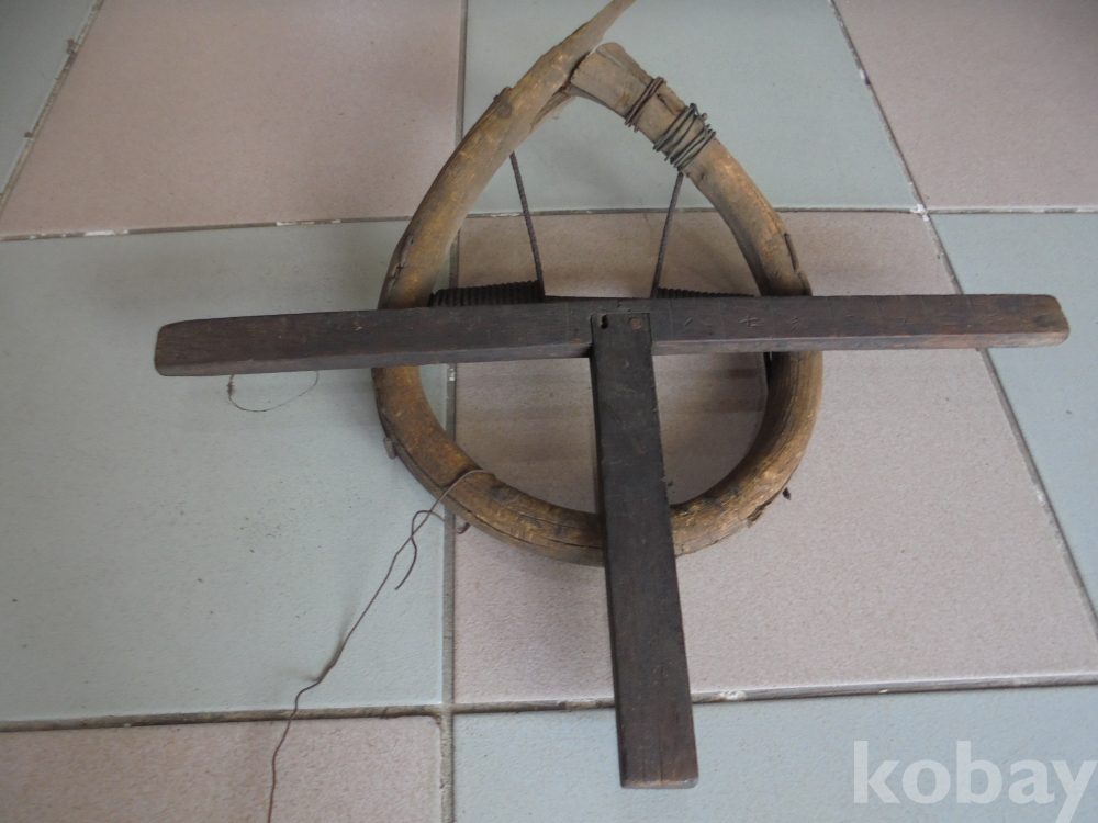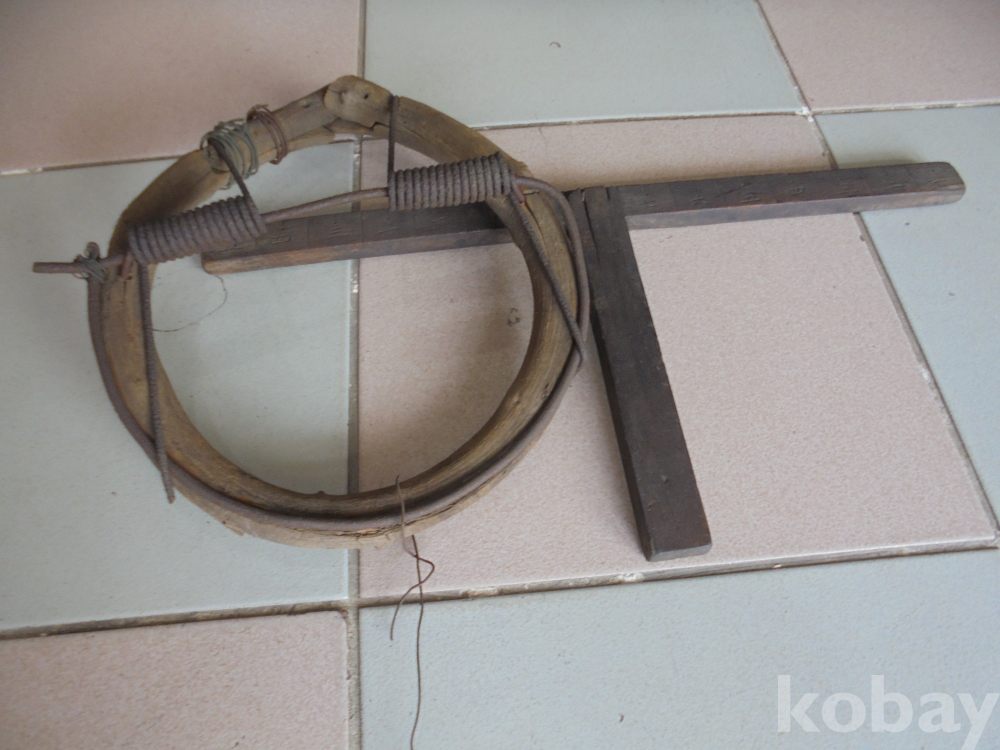 다래순으로만든지오래되여 때물이 짜글짜글하고 철사동맨곳등의 형체완연한 꿩틀과 오래된 눈금완연한 티자 전체 때물좋은 민속품 2점