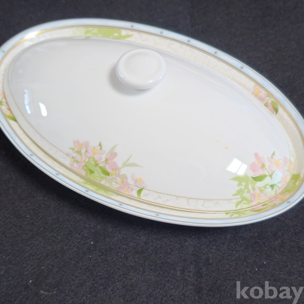 (((도자기식기))) 오래전 꽃문양이 이쁜 도자기 타원형 뚜껑 볼 (행남자기)