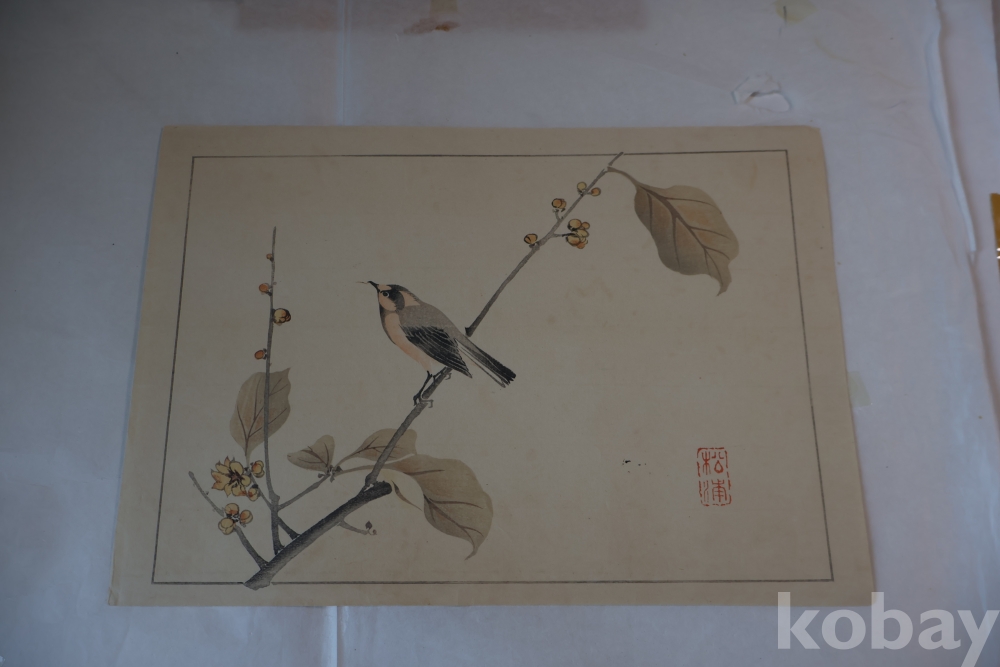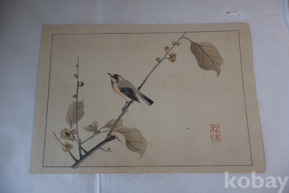 1930 대 목판화 새 임니다 아름다운 디자인 구도 섬세 함을 가진 명화 임니다 화가의 낙관이 보임니다