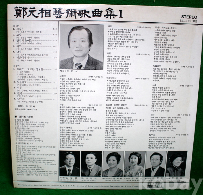 (LP) 장원상 예술가곡집 1 - 사랑은 / 당신의 눈에는 / 해운대에서 ...