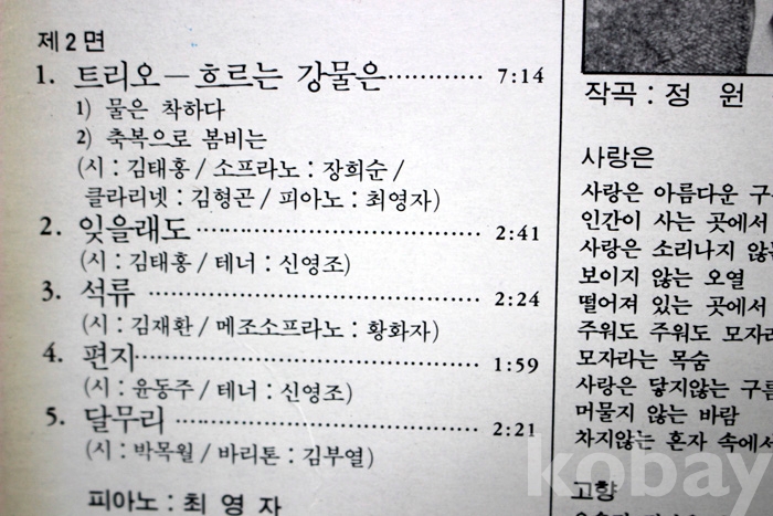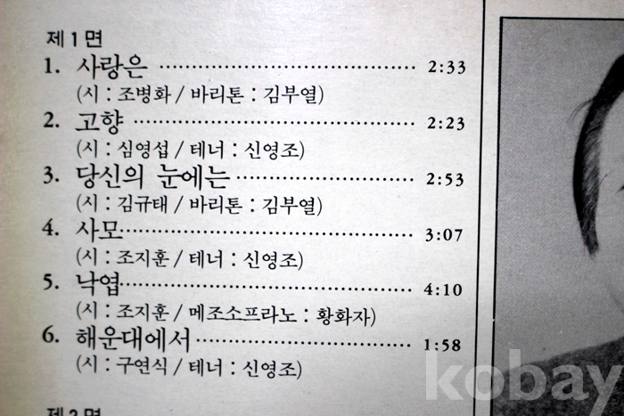 수록 곡 목은 사진을 참조하시기 바랍니다
