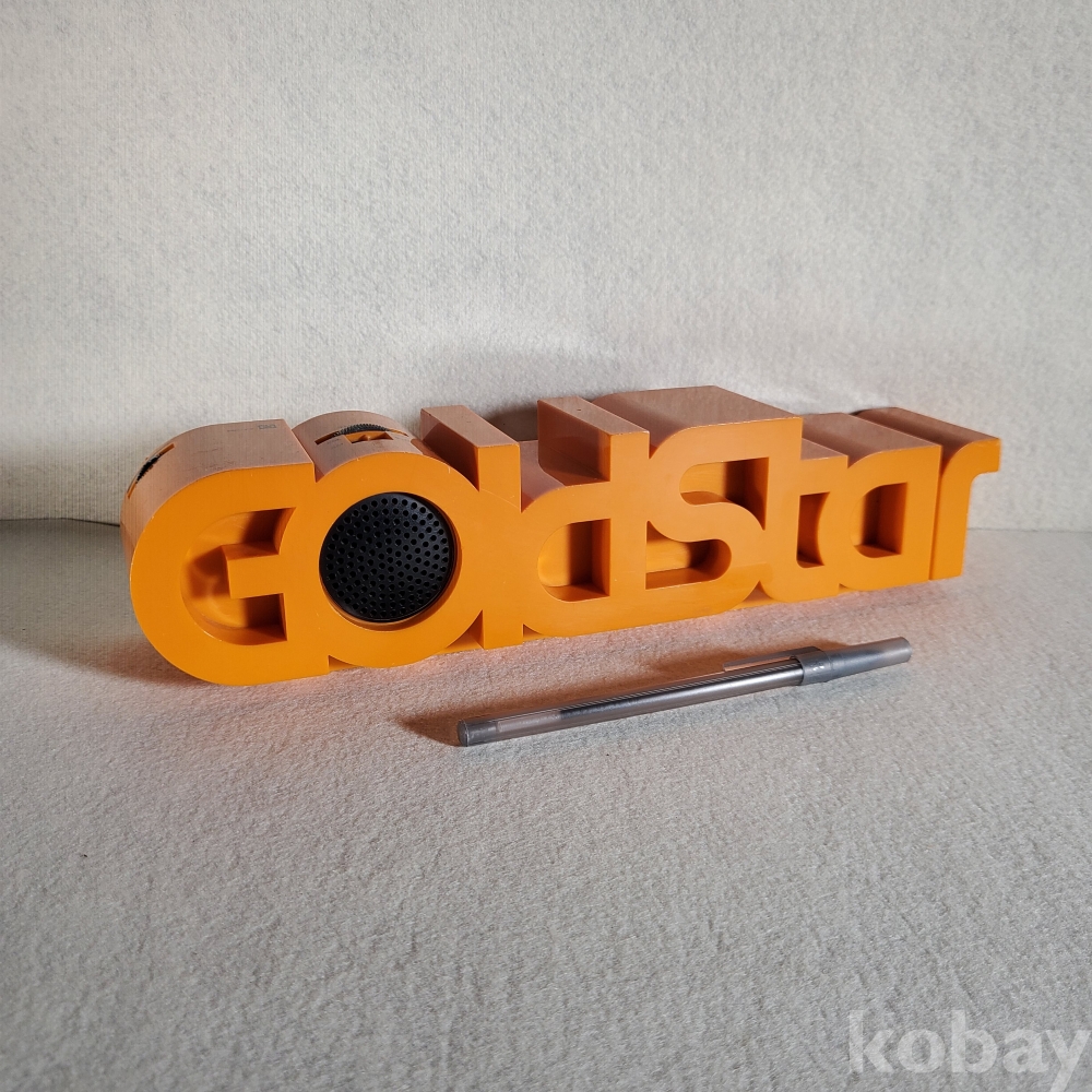 본 제품의 가장 큰 특징이자 독보적인 가치는 전면 부위를 당당하게 장식하고 있는 'GOLD STAR' 대형 영문 로고 디자인에 있습니다. 당시 금성사가 세계 시장을 향해 뻗어 나가던 기술적 자신감을 브랜드 상호 자체를 하나의 강력한 디자인 아이콘으로 승화시켜 표현한 모델입니다. 이는 단순한 표기를 넘어 70년대 산업 디자인의 과감함과 미학을 보여주는 결정적인 대목입니다.