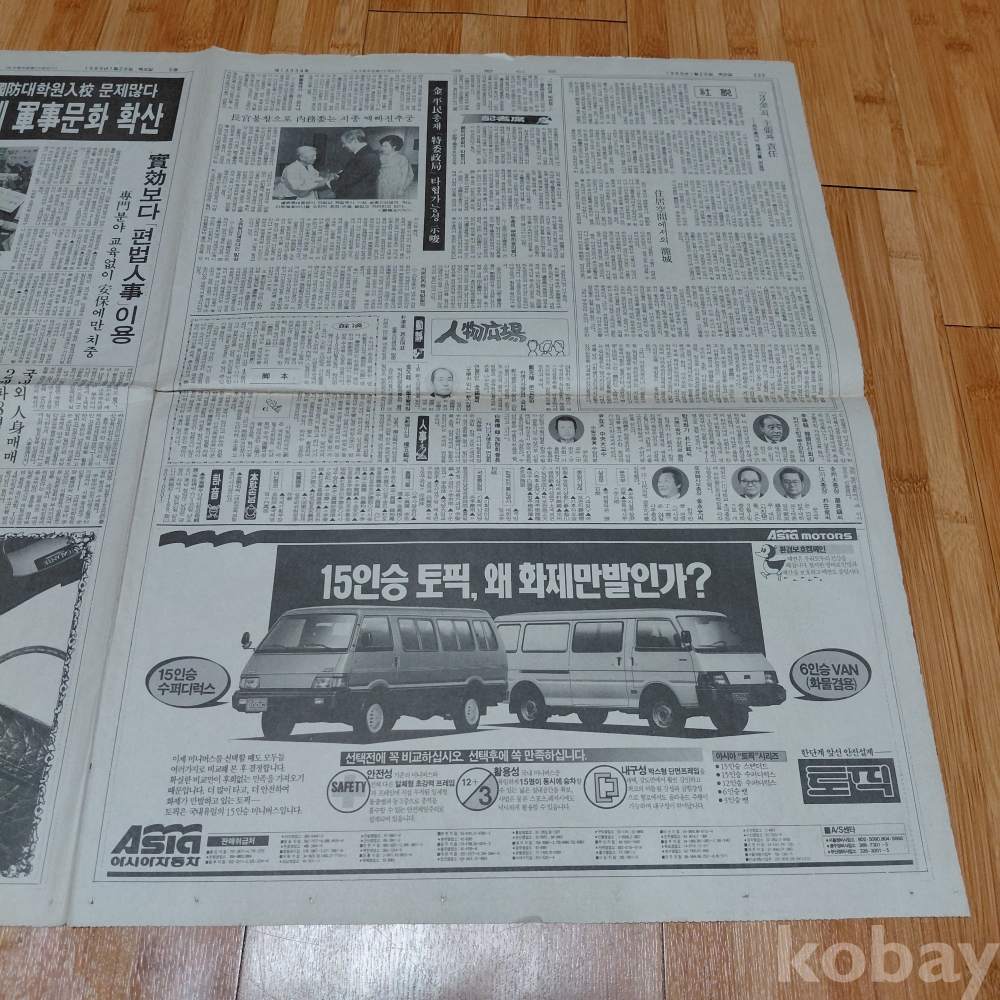 아시아 자동차 미니버스 토픽 광고 경향신문 89년1월26일 올려드립니다
