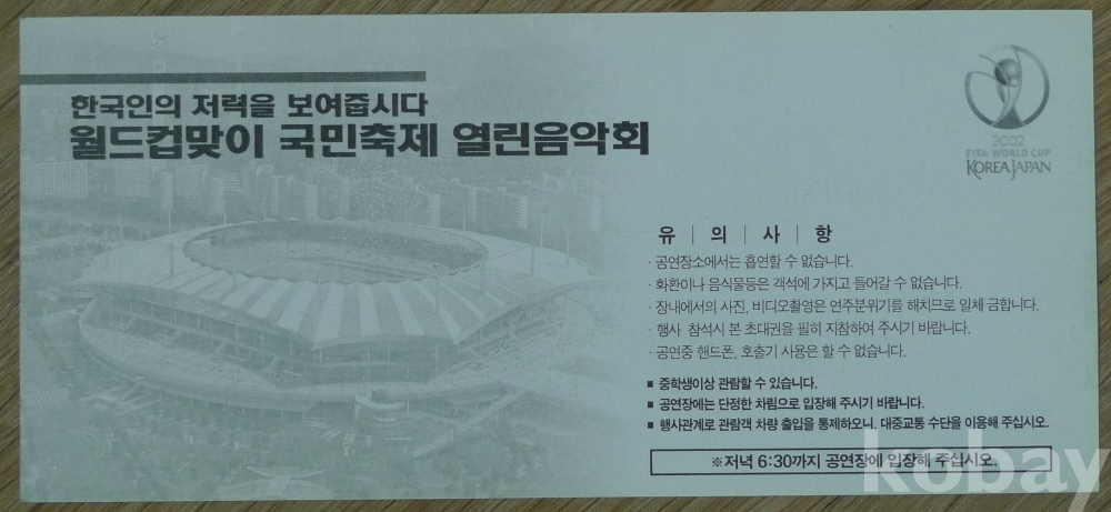 2001년 월드컵 맞이 국민 축제 KBS 열린음악회 안내 전단지 - 앞,뒷면 상암동 월드컵 경기장 전경 -