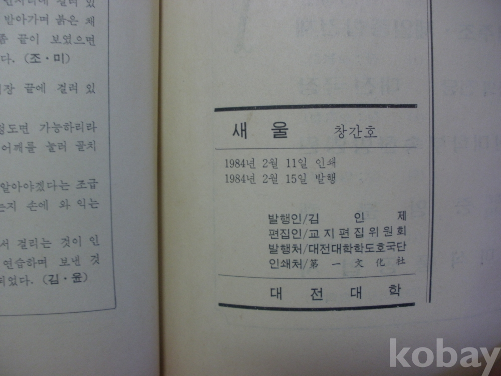 (창간호) 새울 - 한국 민요 소고, 만해 한용운의 시 (1984년, 대전대학)