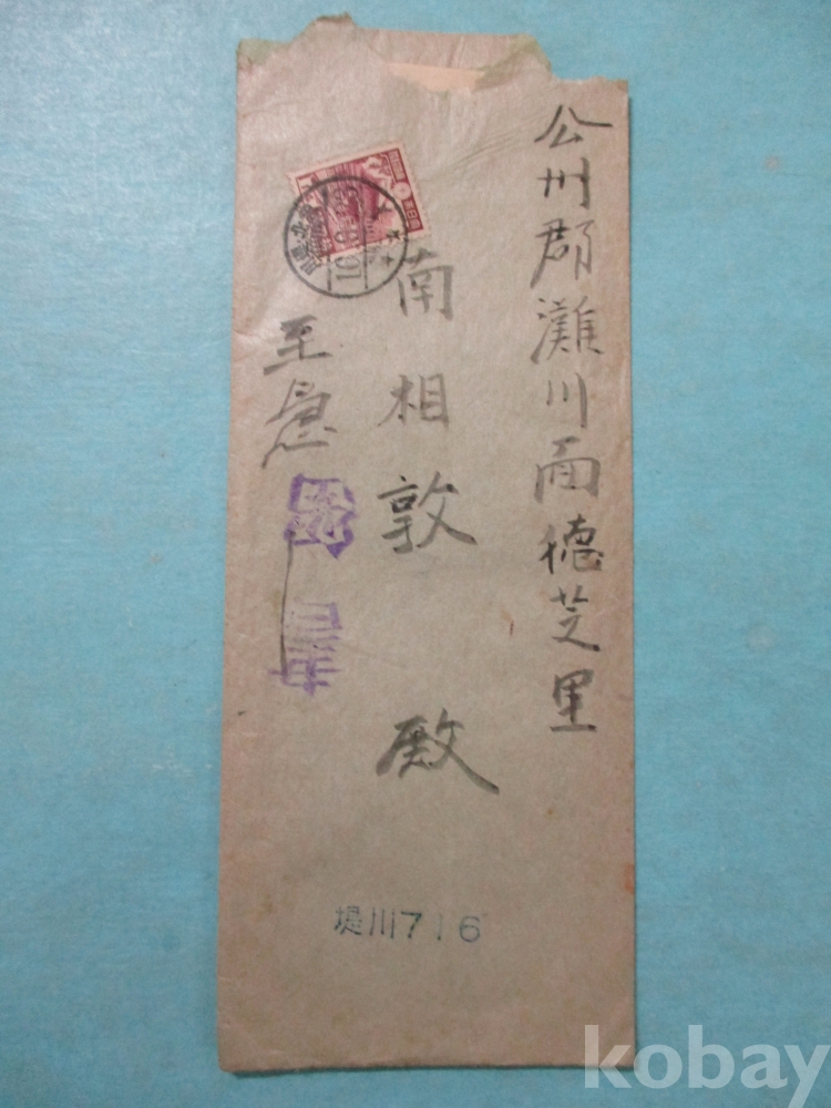 소화 16년 9월 23일 충북 제천소인 선명한 봉피와 간찰