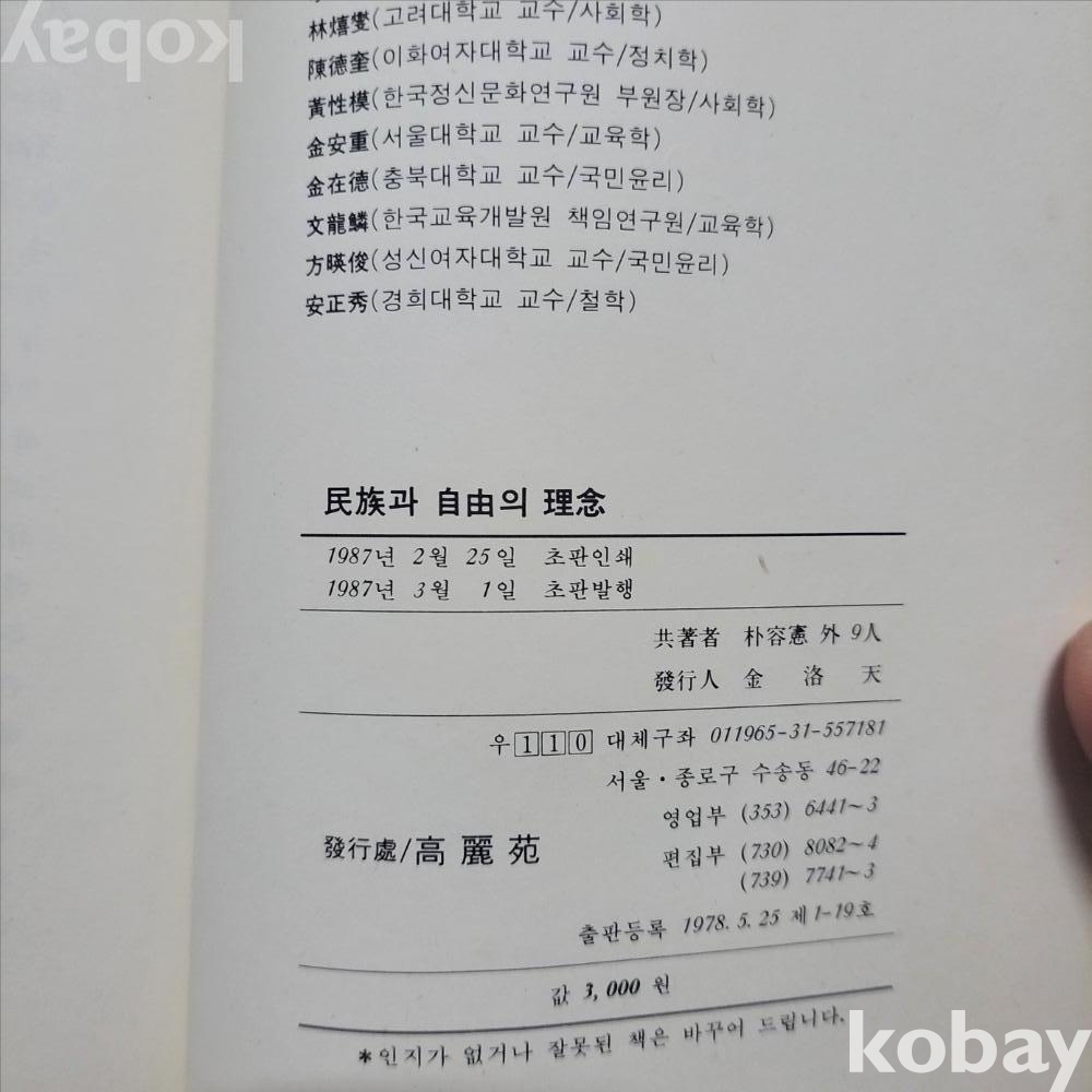 [희귀본] 민족과 자유의 이념 ; 중급/서고ZZ04