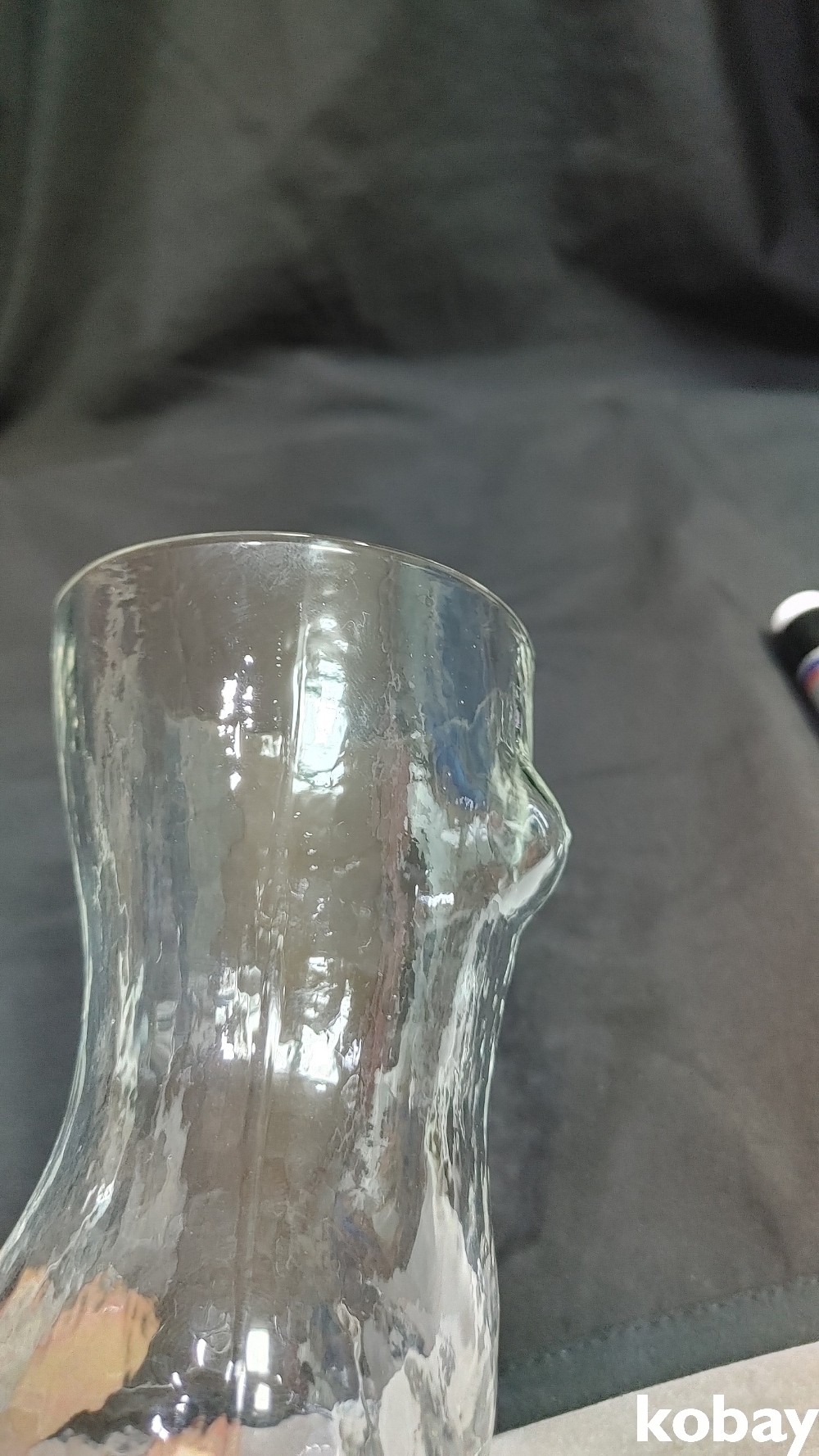 옆면보시면 양쪽에 줄 같은 선이 있는데 예전잔은 그런선이 보이며 간혹 기포 공기방울 작은게 있습니다