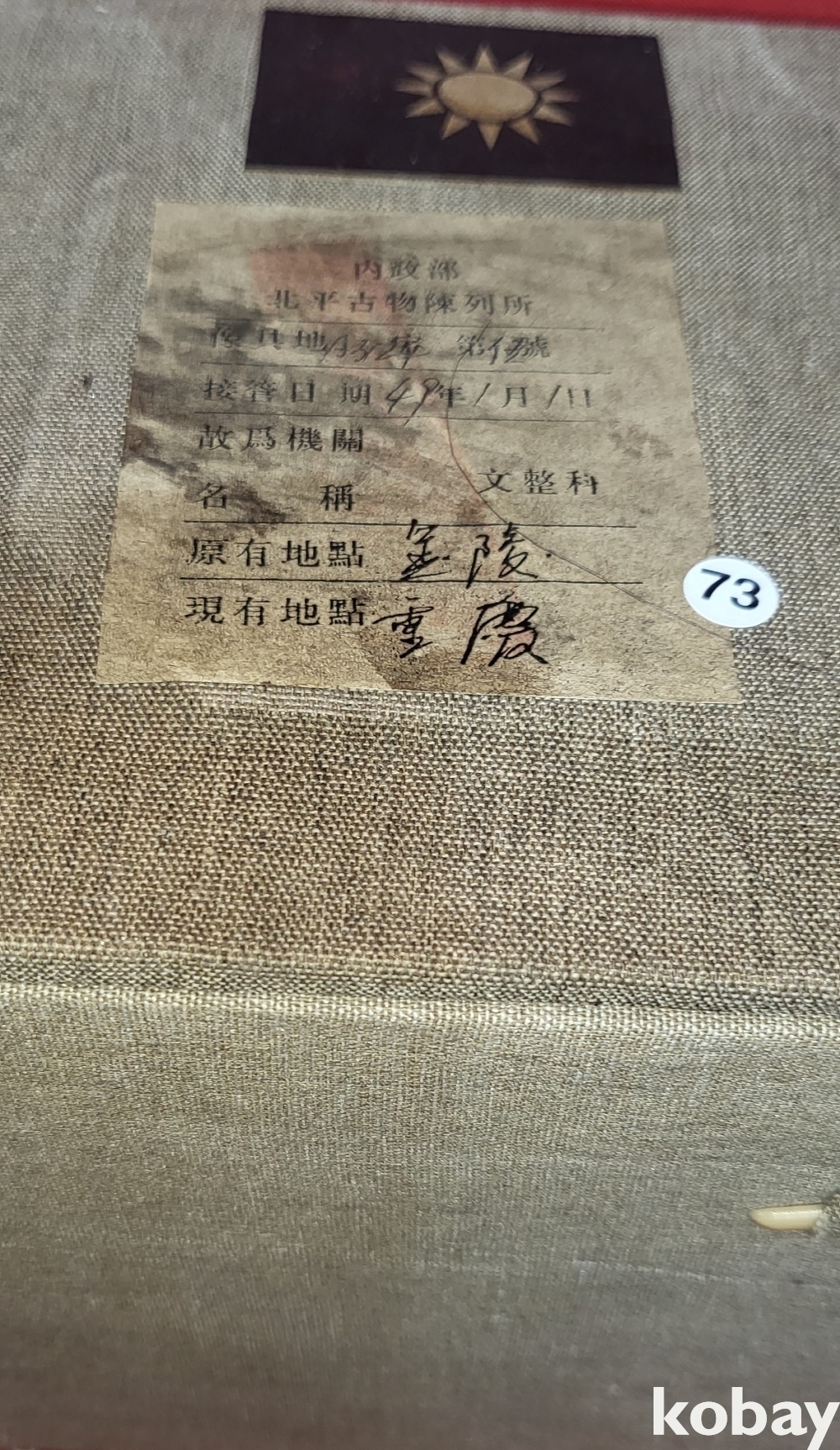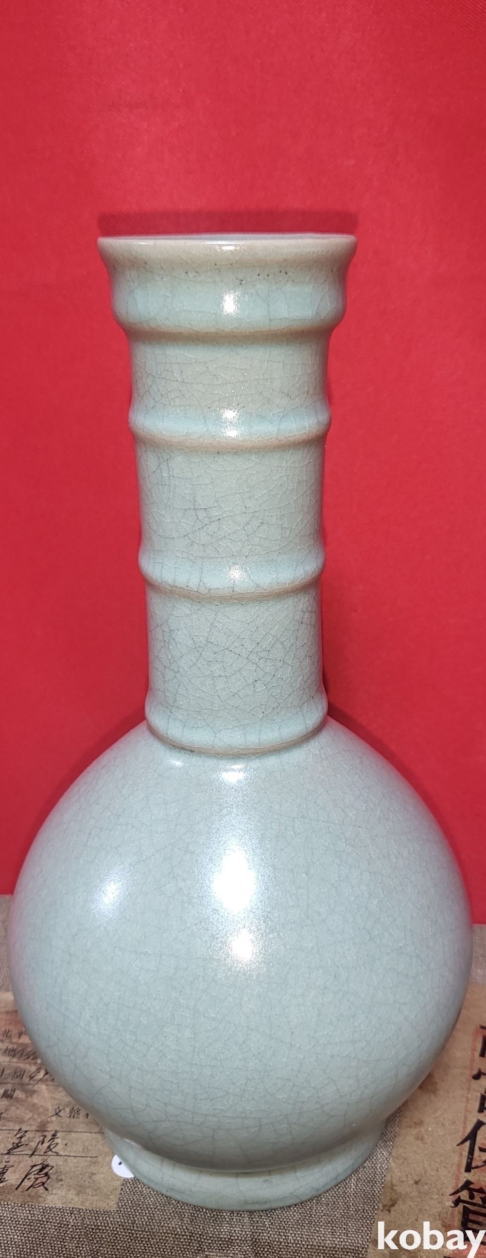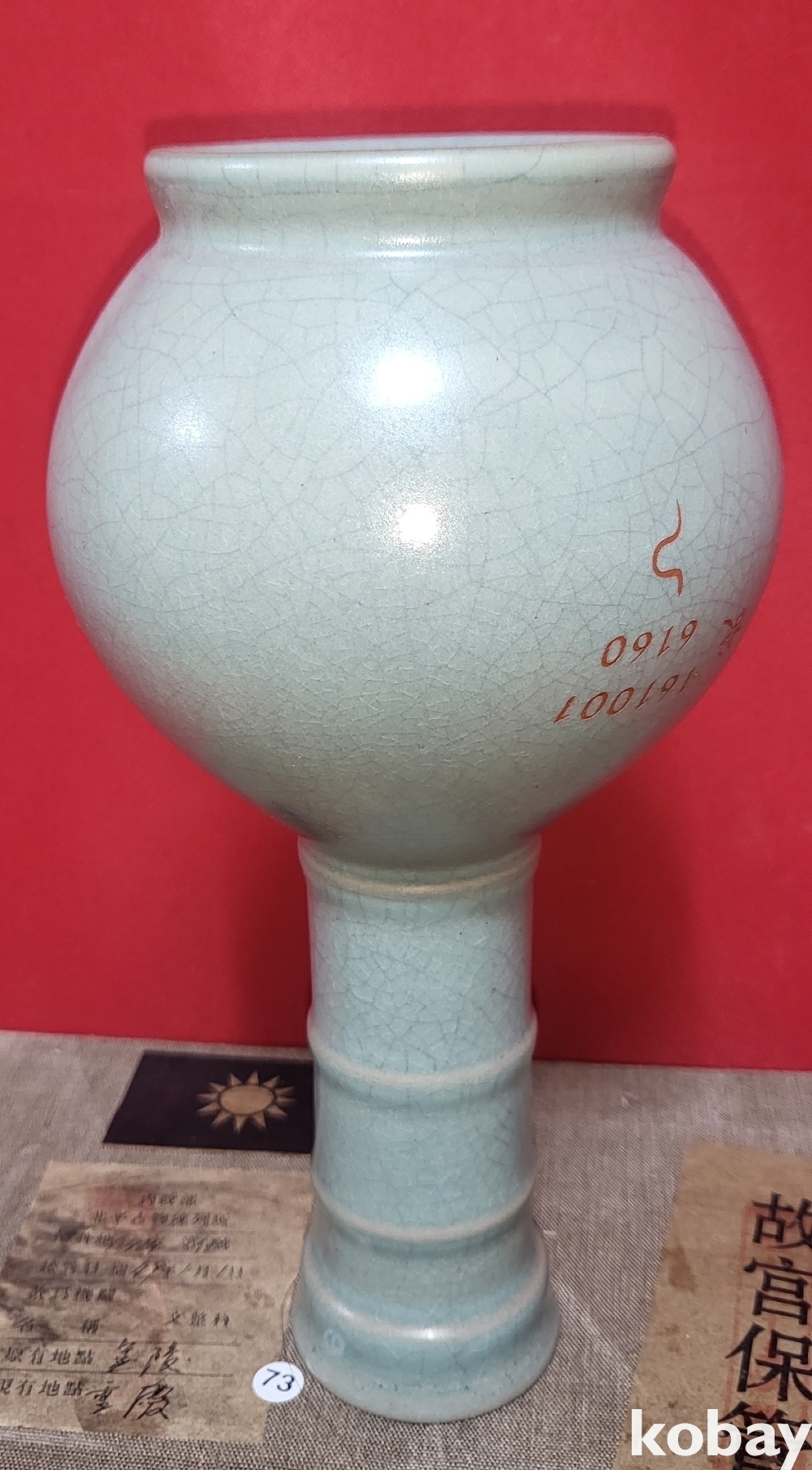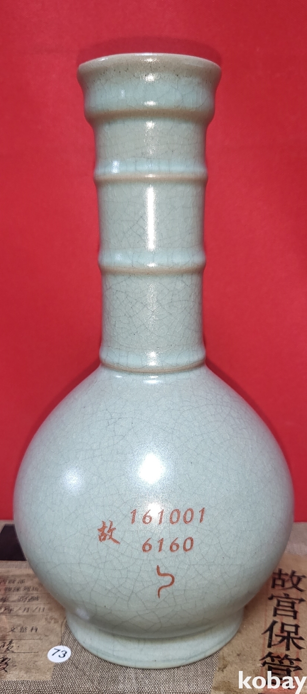 고궁보관위원회 피난박스에 담겨진 여요 (汝窯) 청천유(靑天釉) 숫자 문양 광구병입니다,
