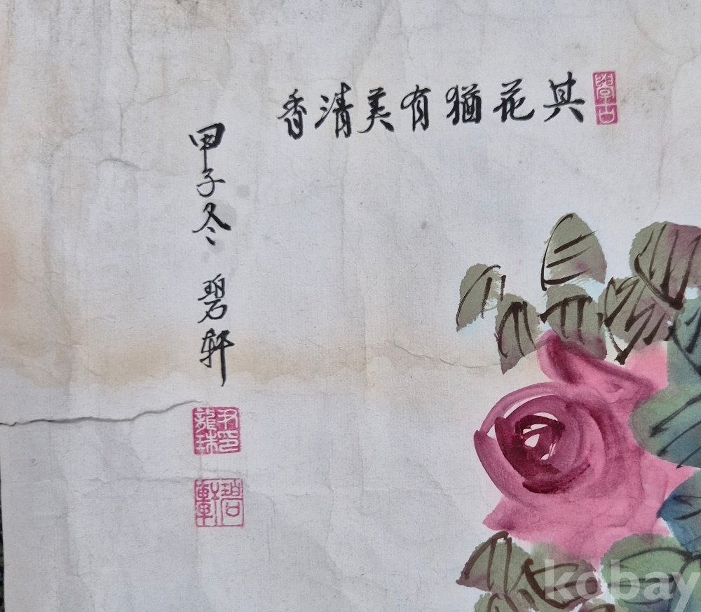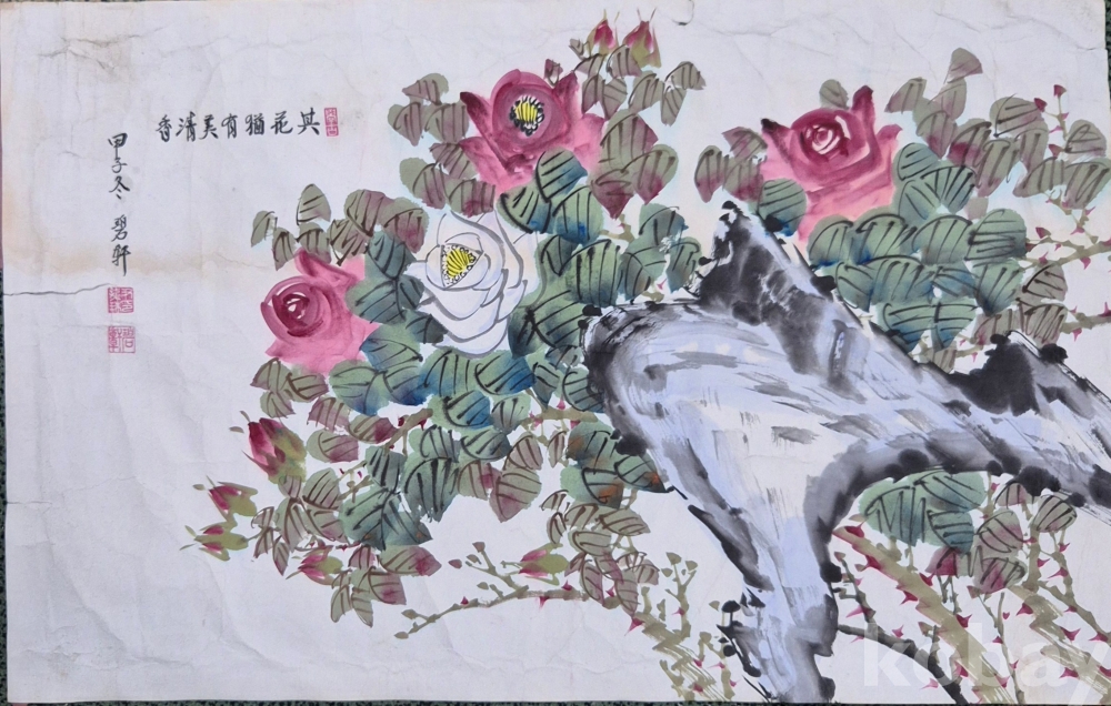 작품성 좋은 괴석이 들어간 아름다운 장미 그림'이오니 이미지상 수결 및 낙관'등 두루 잘 참조하시고