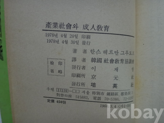 산업사회와 성인교육 (1978년, 한스 헤르만 그루토프 저, 배영사)
