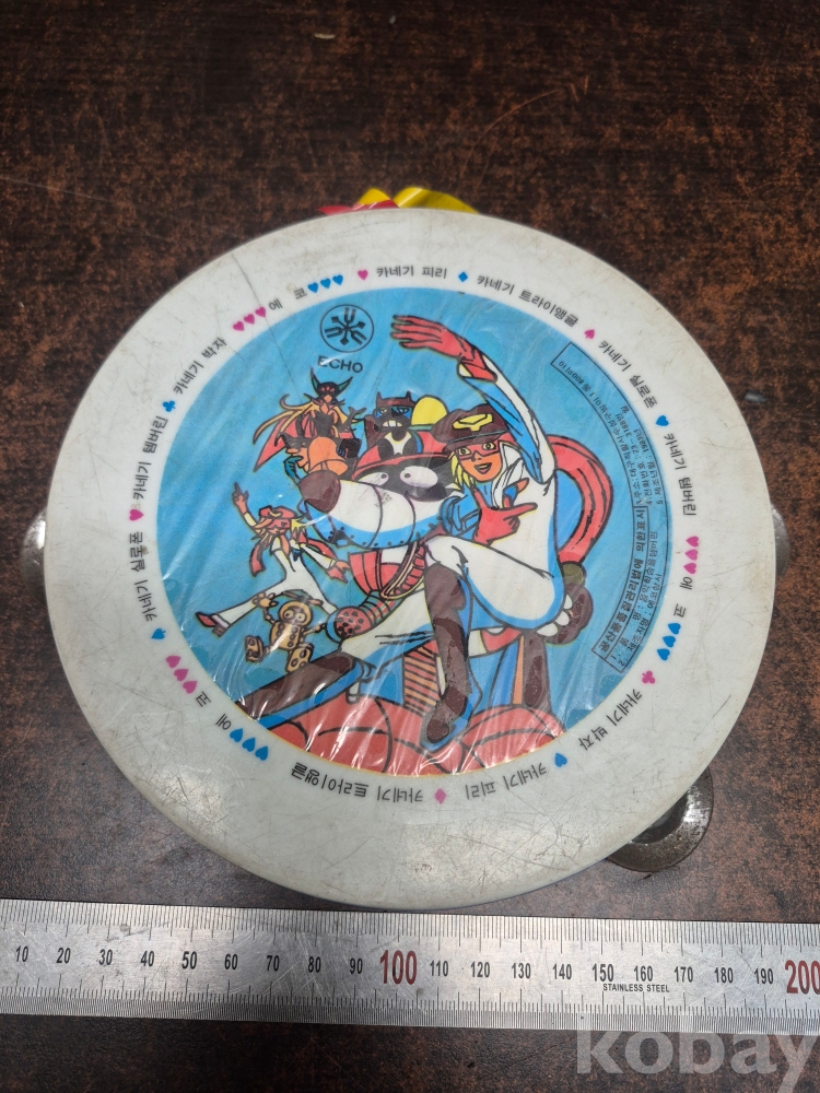 1980년대 어린이용 템버린 얏타맨 디자인 재질 플라스틱에 철 18*18*4