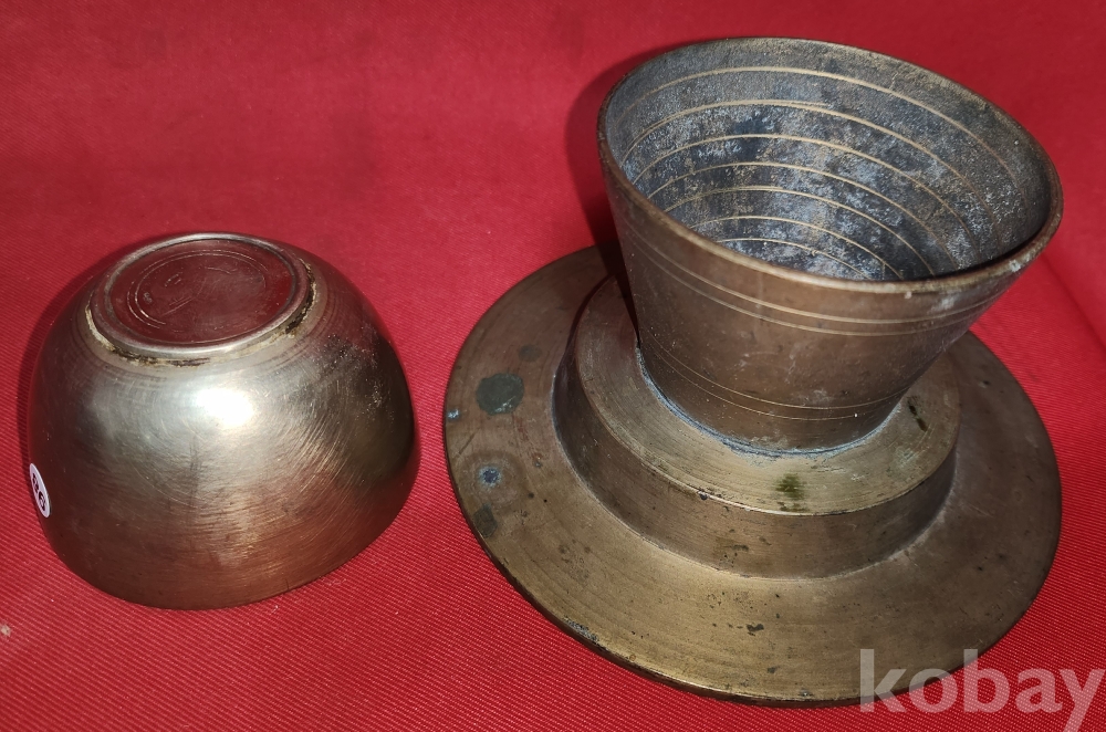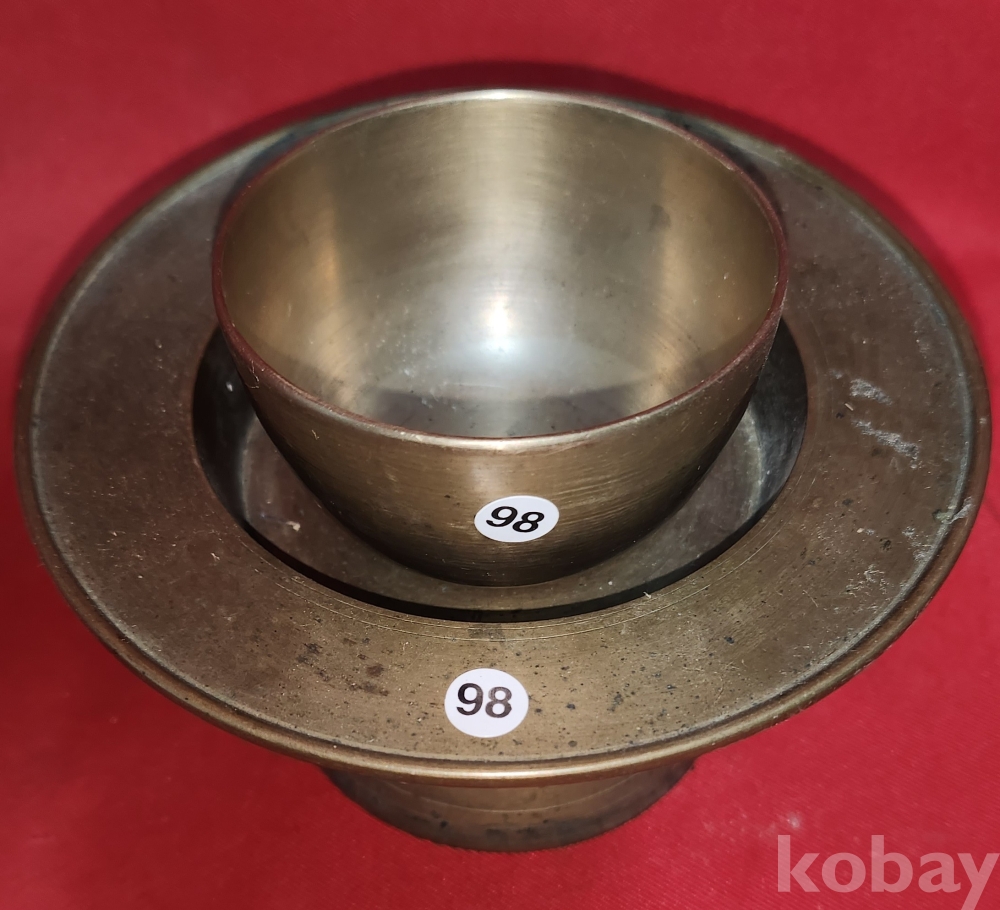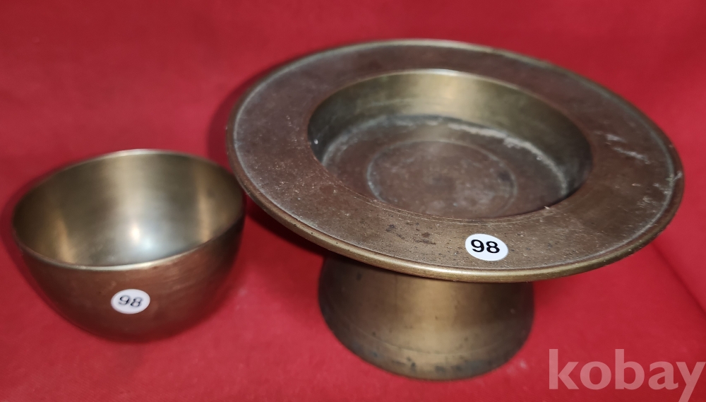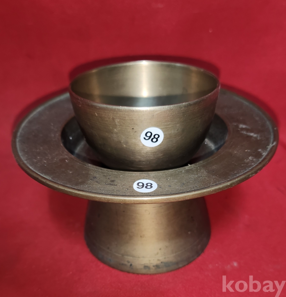 짱짱한 연대 갖춘 유기로 만든 잔과잔대입니다,