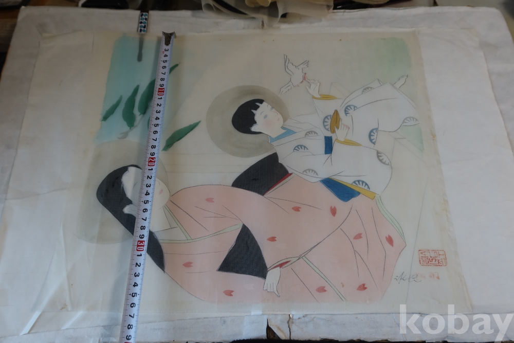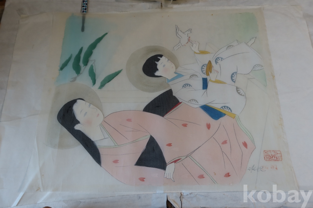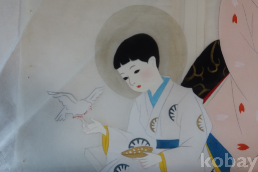 일본 성모 비단 화 임니다 이유를 알수 없으나 한글로 신부님의 낙관이 보임니다 아름답고 여운을 가진 명화 임니다 카메라 초점이 부정확 함니다 정밀한 명화 임니다