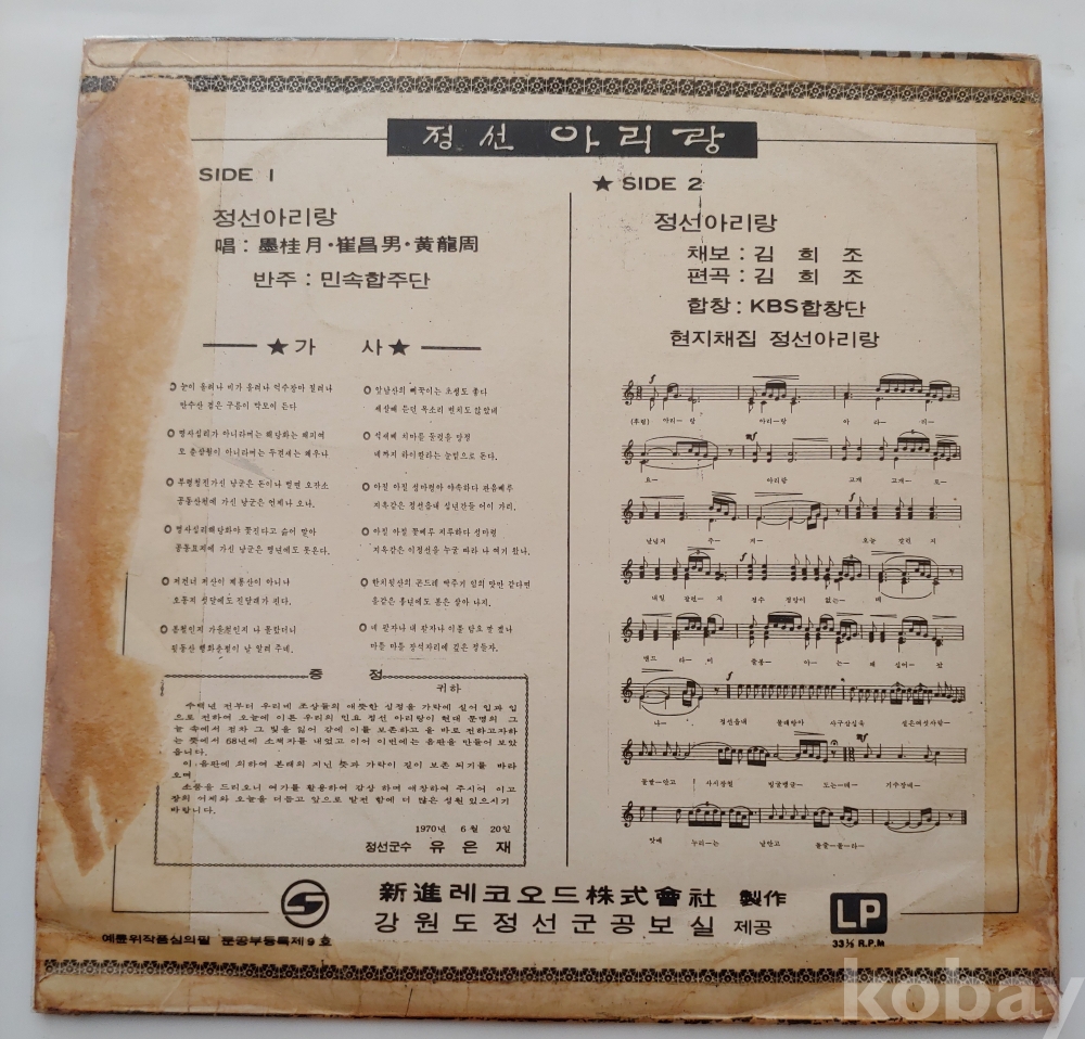 정선아리랑Lp/정선아리랑,현지채집 정선아리랑