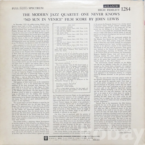 The Modern Jazz Quartet - The Modern Jazz Quartet Plays No Sun In Venice: Original Film Score by John Lewis