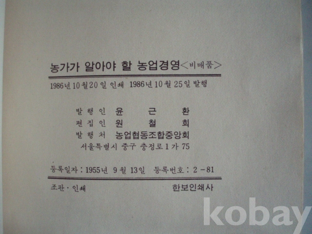농가가 알아야 할 - 농업 경영 (1986년, 농협중앙회)