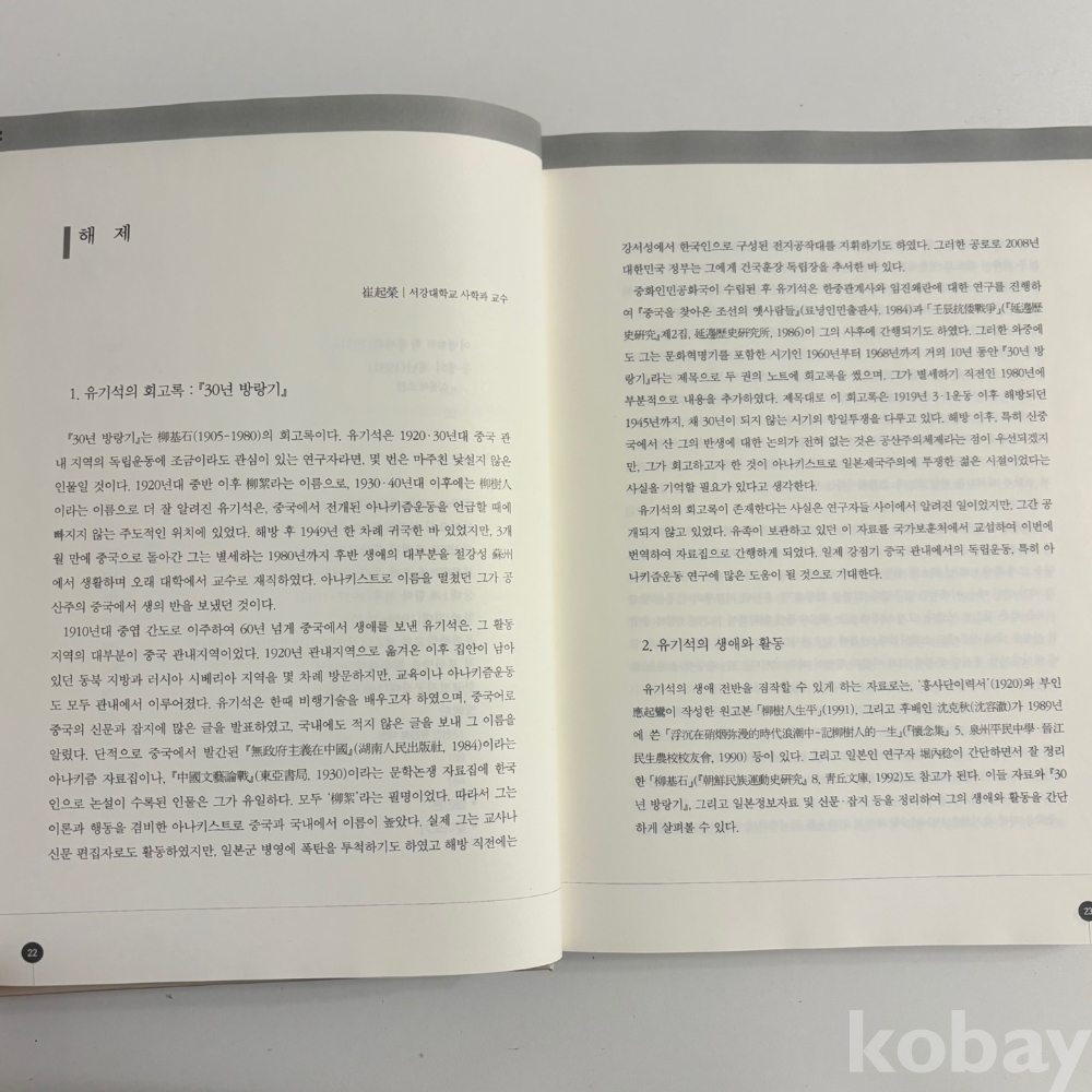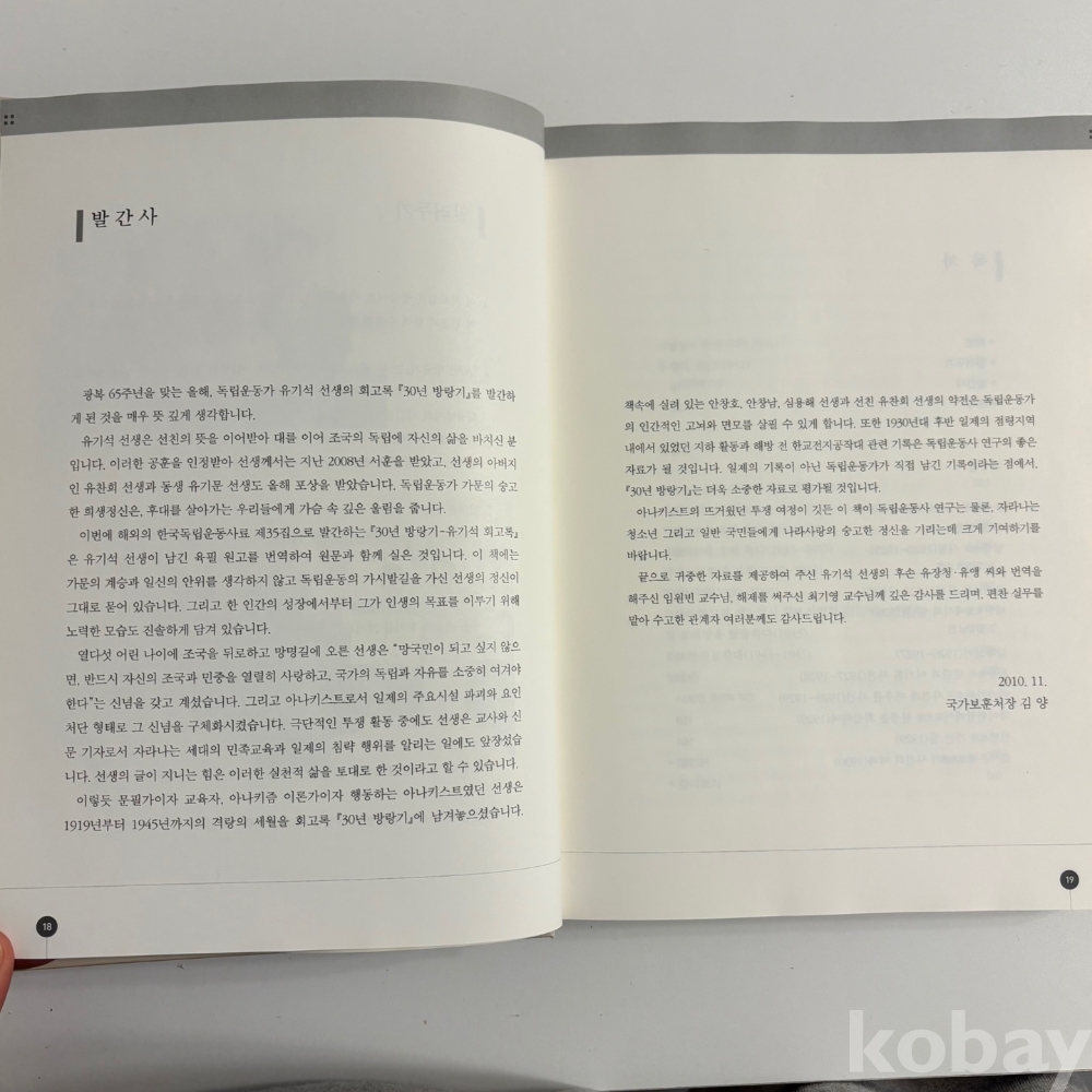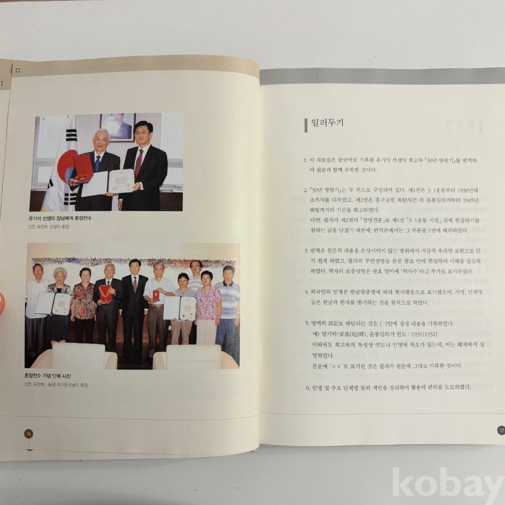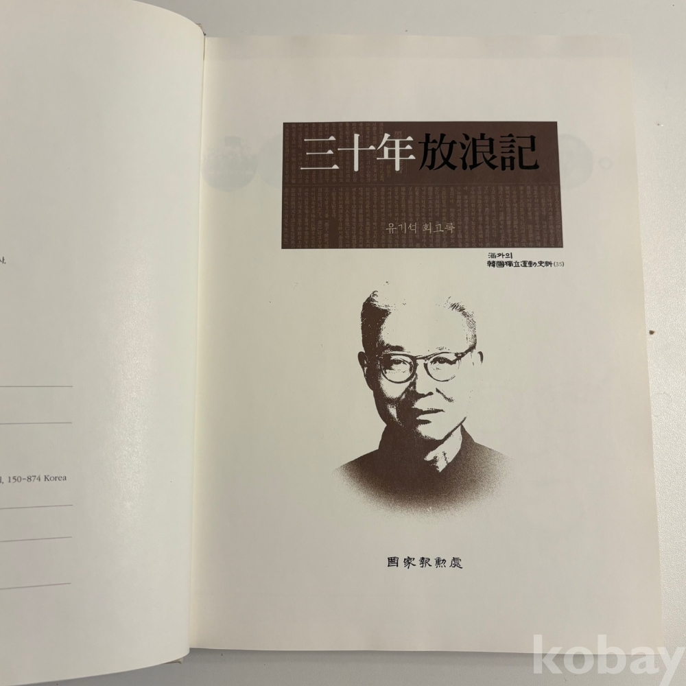 [독립운동사, 광복군, 자서전] 국가보훈처, < 30년 방랑기 유기석 회고록>, 국가보훈처, 2010, p. 567, 상태 상급(사진참조)