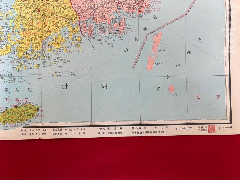 1981년 대한민국 지도입니다. 전지사이즈정도 되네요