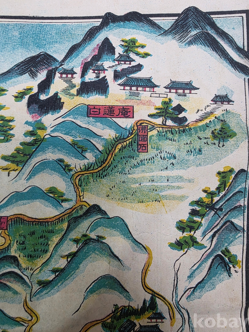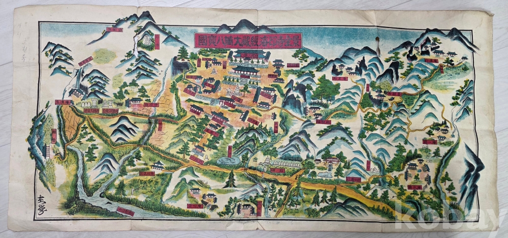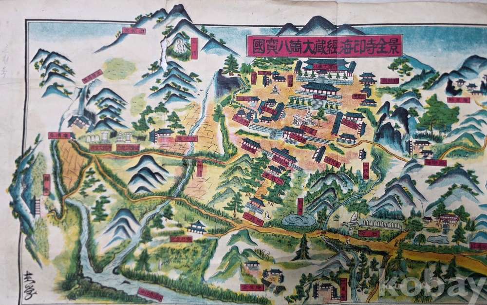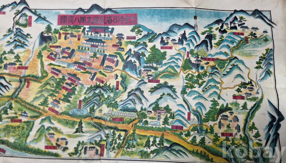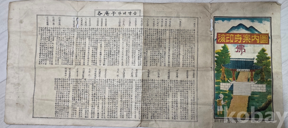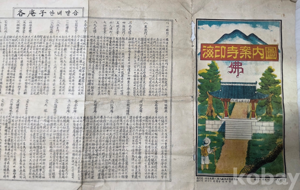 당시 각 암자를 소개하는 글이 상세히 기록되어 있고 뒷면에는 컬러로 가야산을 그리고 또한 백련암을 그림과 함께 잘 그려져 있는바. 근대사찰 안내도로서는 수준급임