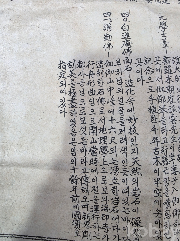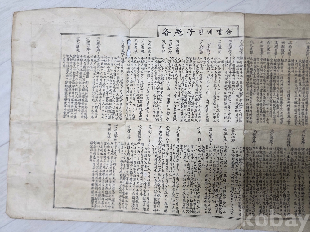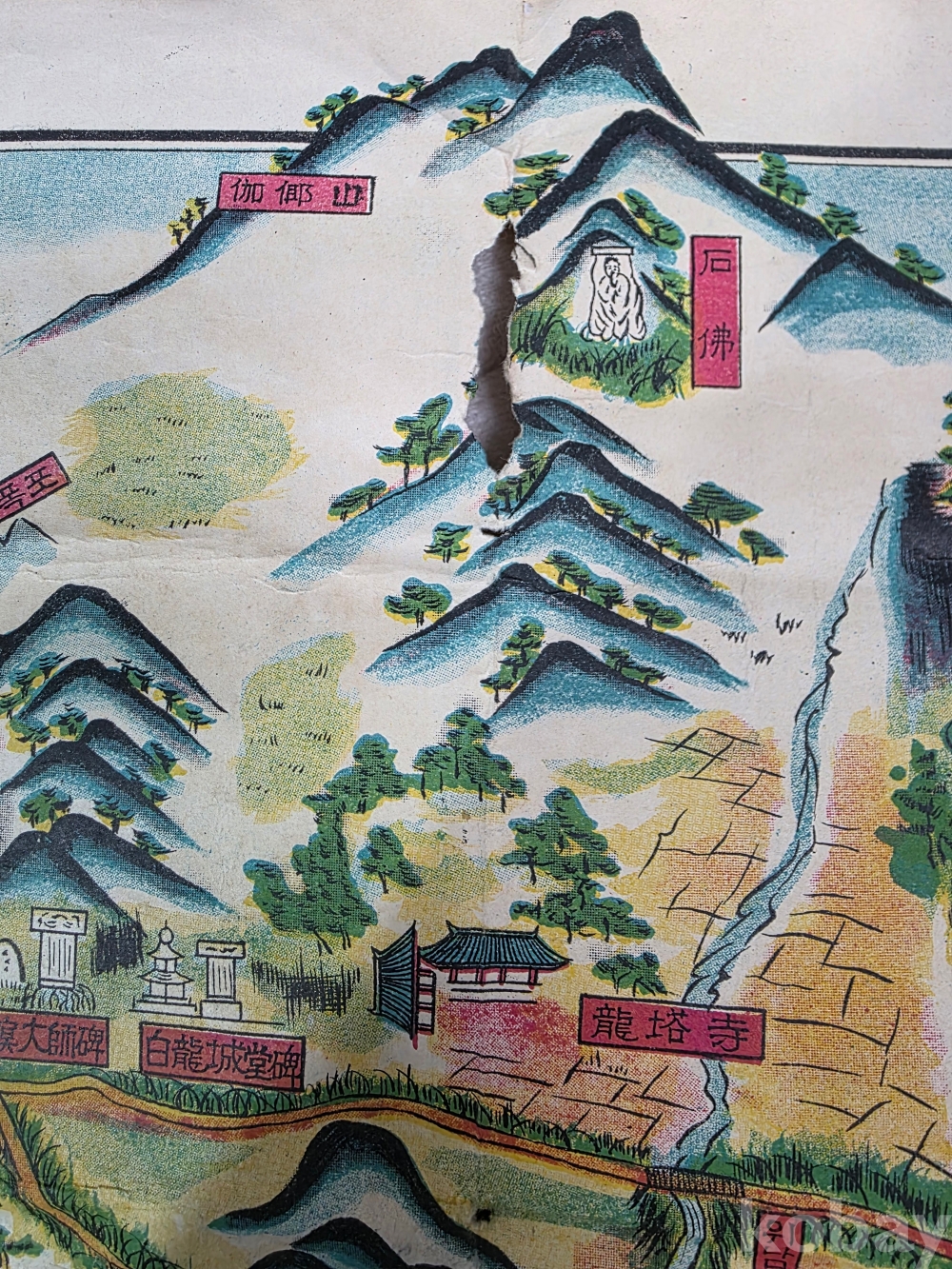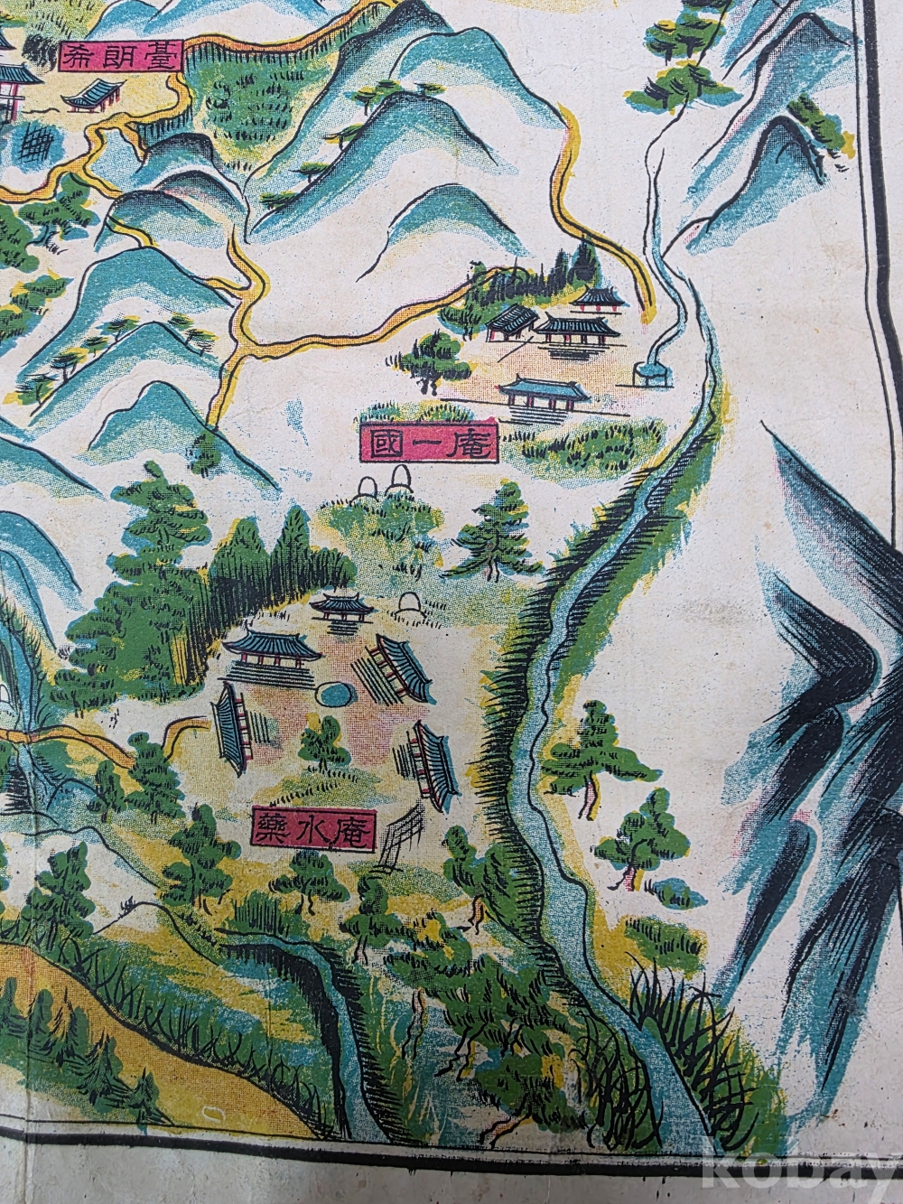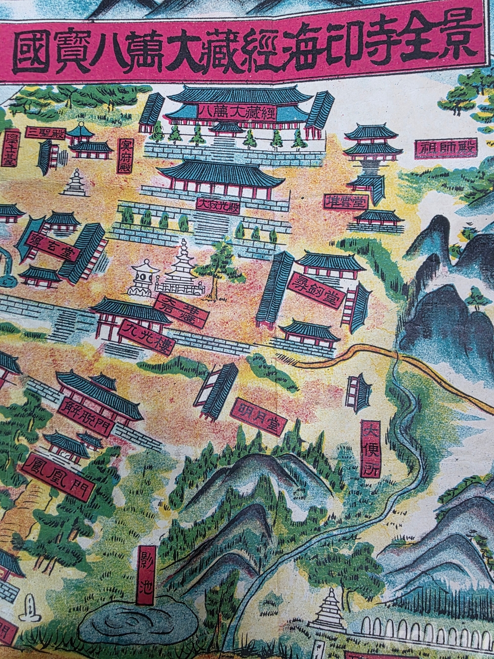 당시 각 암자를 소개하는 글이 상세히 기록되어 있고 뒷면에는 컬러로 가야산을 그리고 또한 백련암을 그림과 함께 잘 그려져 있는바. 근대사찰 안내도로서는 수준급임