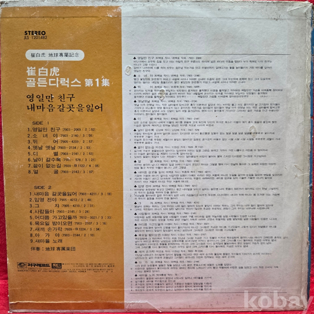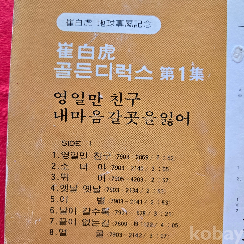 | 자켓상태 | VG : 주름, 접힘, 모서리 찢김 다수 | 음반상태 | EX : 재생에 영향 없는 가벼운 기스 존재 | 발매정보 | 초반 | 가사지여부 | 무 |