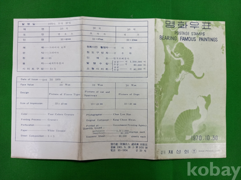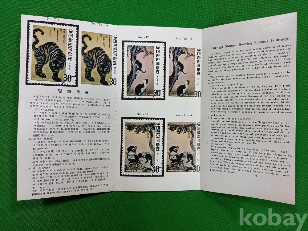 명화우표 안내 카드는 얼룩 등 세월의 흔적 있으며, 다른 안내 카드는 상태 좋습니다