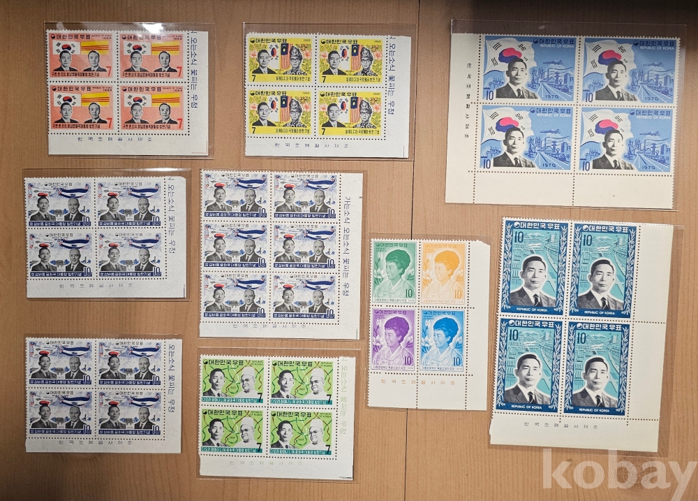 박정희대통령 관련 우표 명판블럭 총 9장입니다.