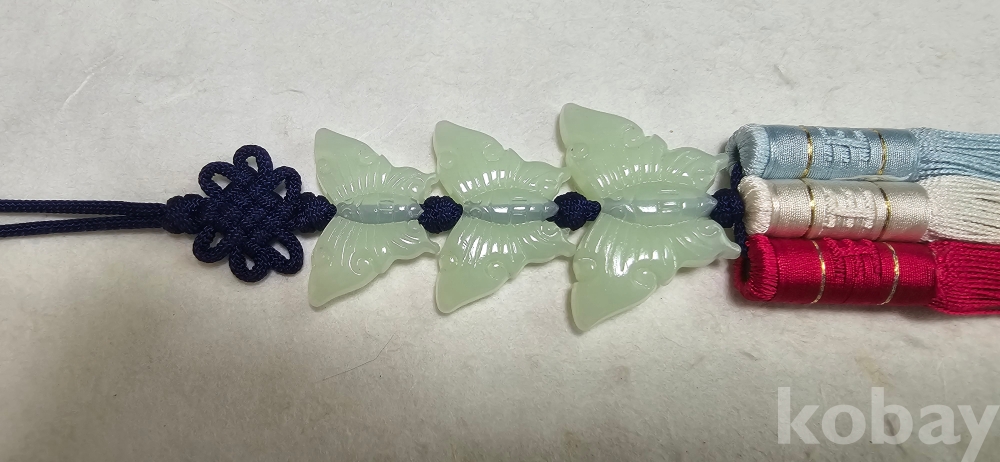 - 옥나비 노리개: 길이 40Cm. - 볼펜 14.5Cm 참조.