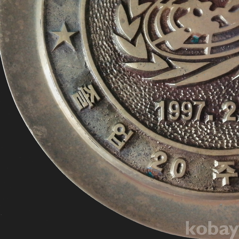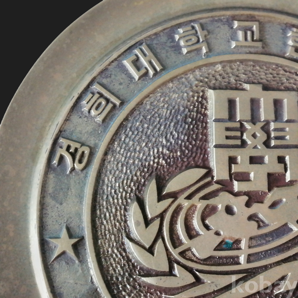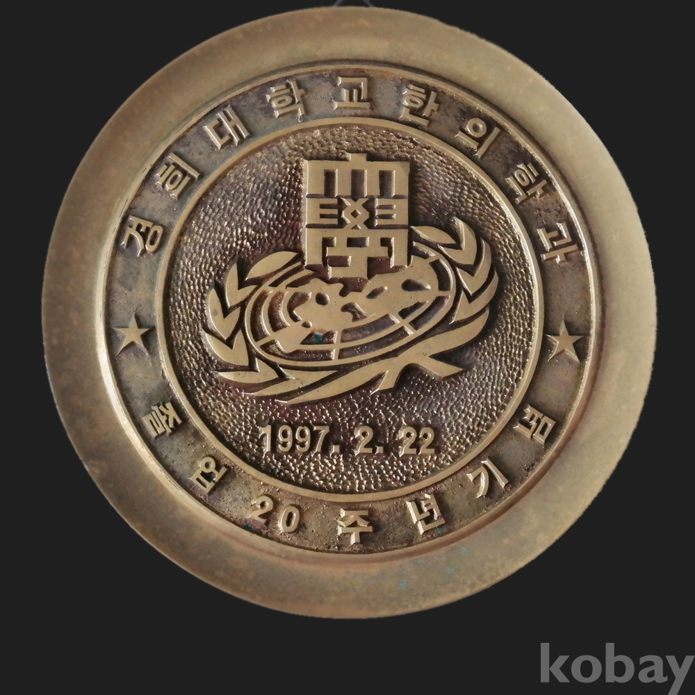 황동으로 매우 두툼하게 만들어진 경희대학교 한의학과 졸업 20주년 접시액자 입니다.