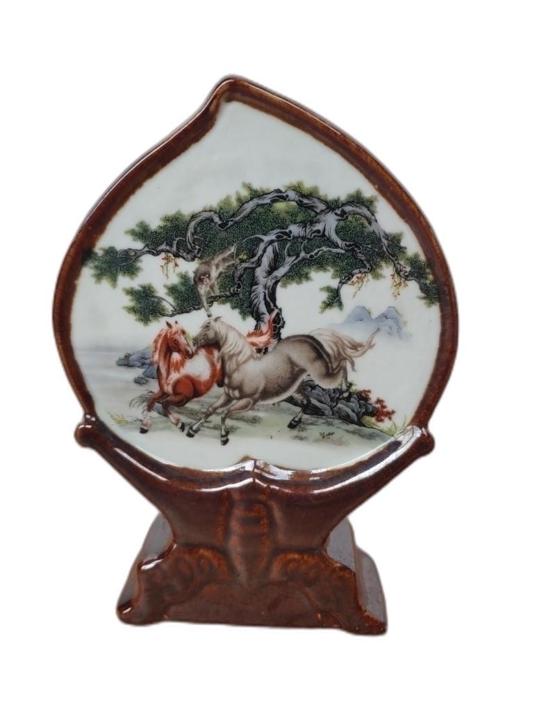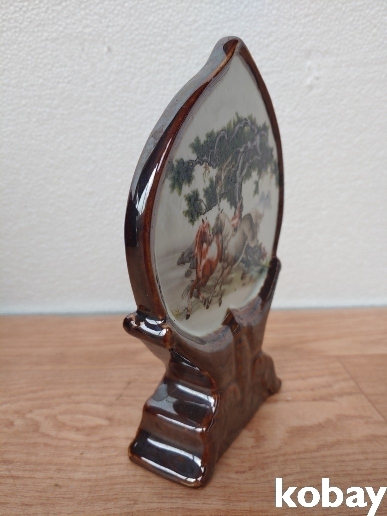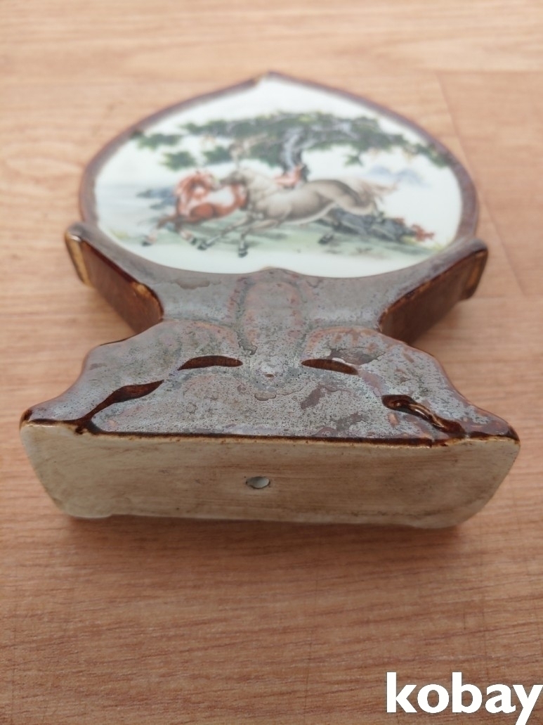 말 그림이 있는 복숭아 모양 도자기 입니다.