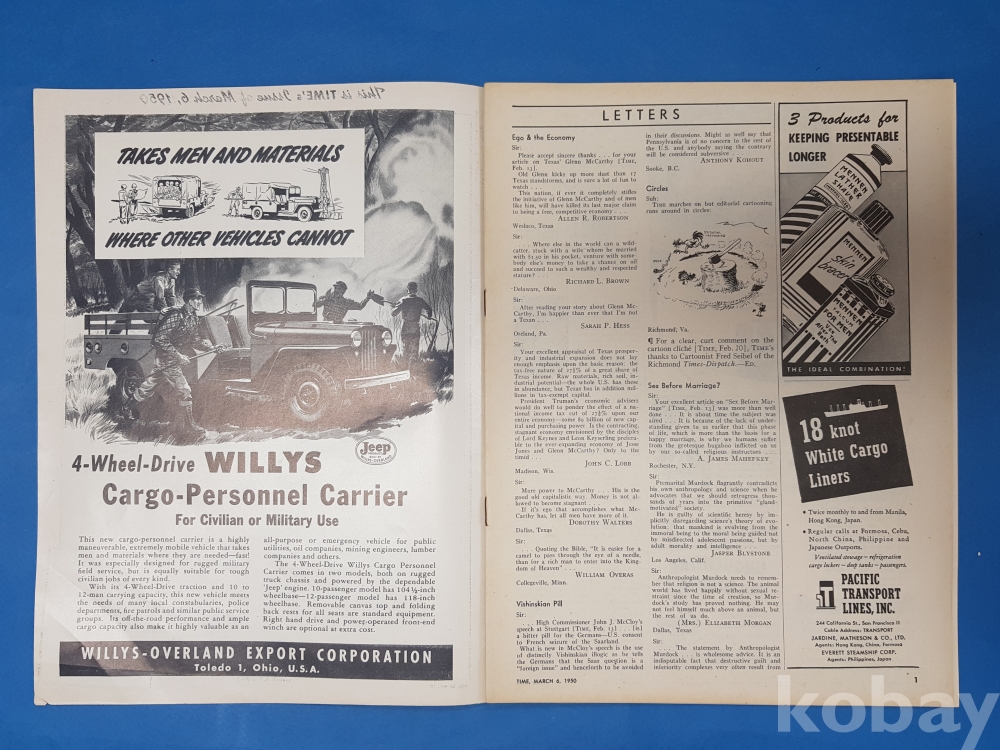 **** TIME 'THE WEEKLY NEWSMAGAZINE'/1950.3.6/44페이지