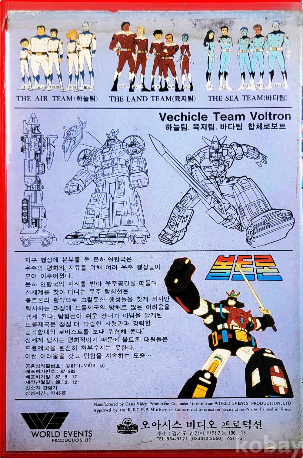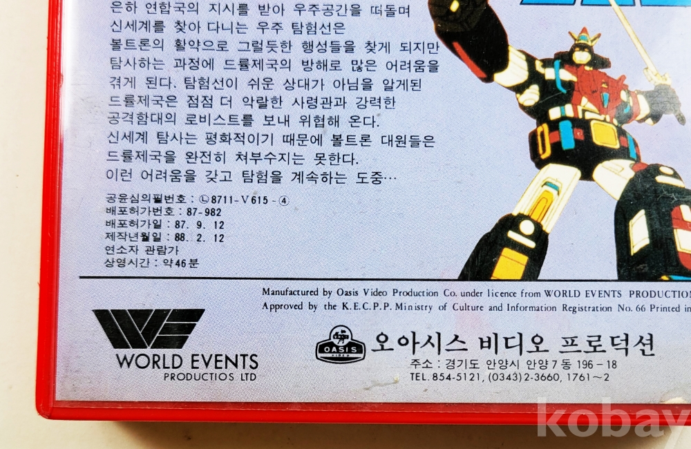 물 품 명 | 만화영화 / 볼트론 : (8,9)편 합본 총1편 / 1988년 / 오아시스비디오프로덕션 |