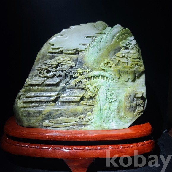 푸른 빛이 감도는 큰 두산옥 한 덩어리를 조각하여 만든 작품입니다.
