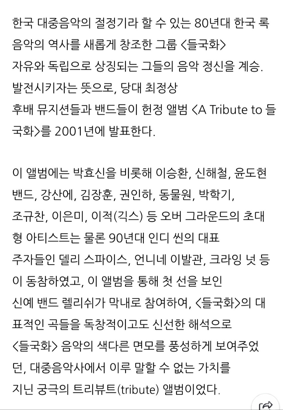 -트리뷰트 들국화 PART.1 픽쳐디스크 LP음반입니다.