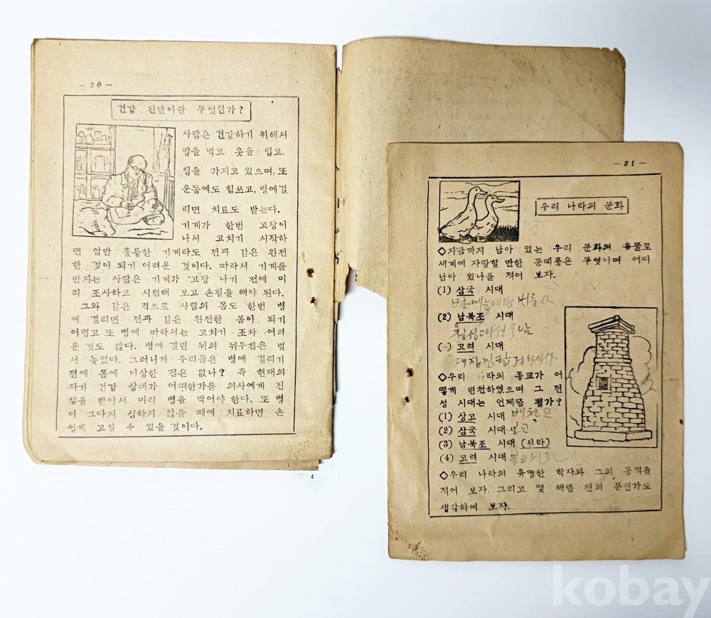상품 설명 | 1) 겨울동무 6 / 조선교학사 발행 / 1948년 / 총 40p / 17-20p, 31p-마지막 페이지 분리, 표지 낡고 뒤표지 찢어짐 / 15 x 20.5 cm 2) 겨울공부 5 / 대한교육연합회 발행 / 1952년 / 총 41p / 표지 낡고 낙서, 책등 손상, 9p-마지막 페이지 벌레 먹은 흔적 / 18.5 x 25.5 cm 3) 겨울 방학 공부 4 / 대한교육연합회 발행 / 1973년 / 총 50p / 18.5 x 25.5 cm | ||